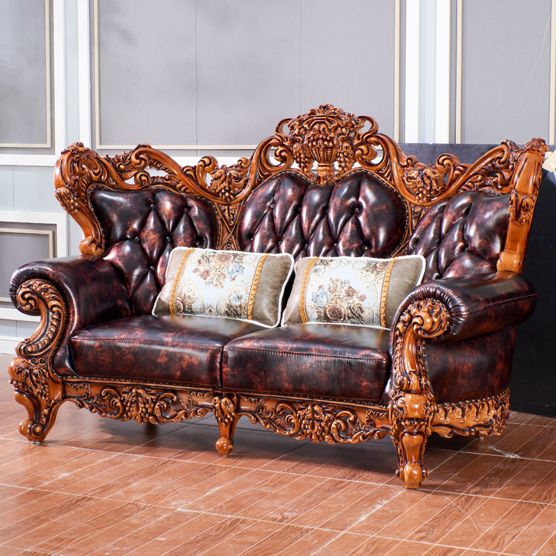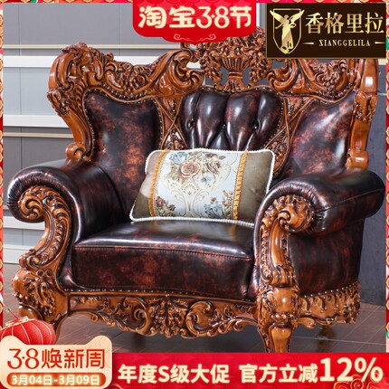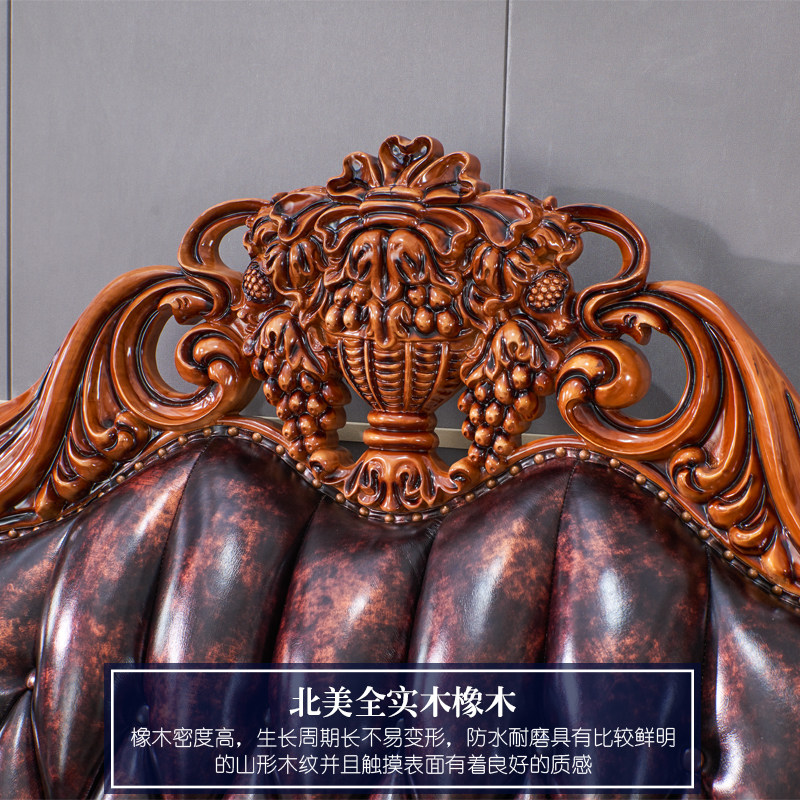 欧式真皮沙发美式奢华别墅复古1234组合沙发实木雕花大气皮艺沙发