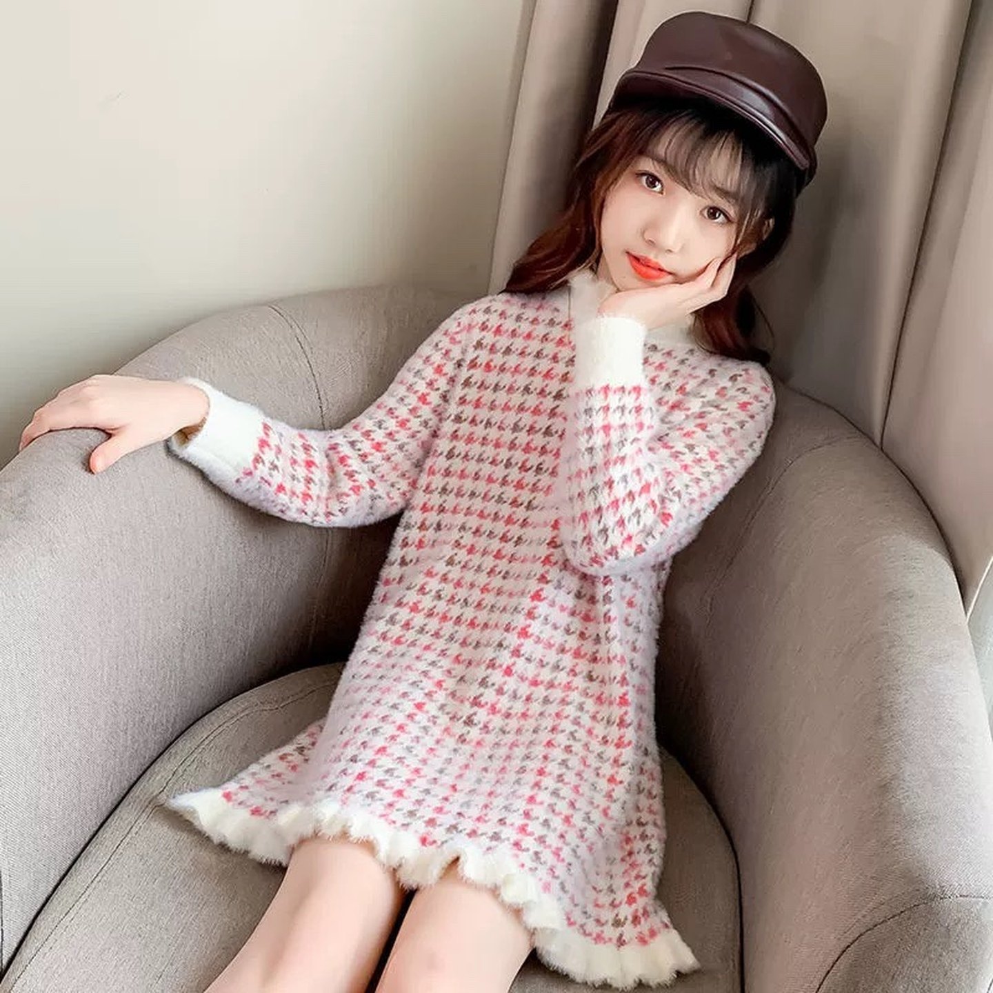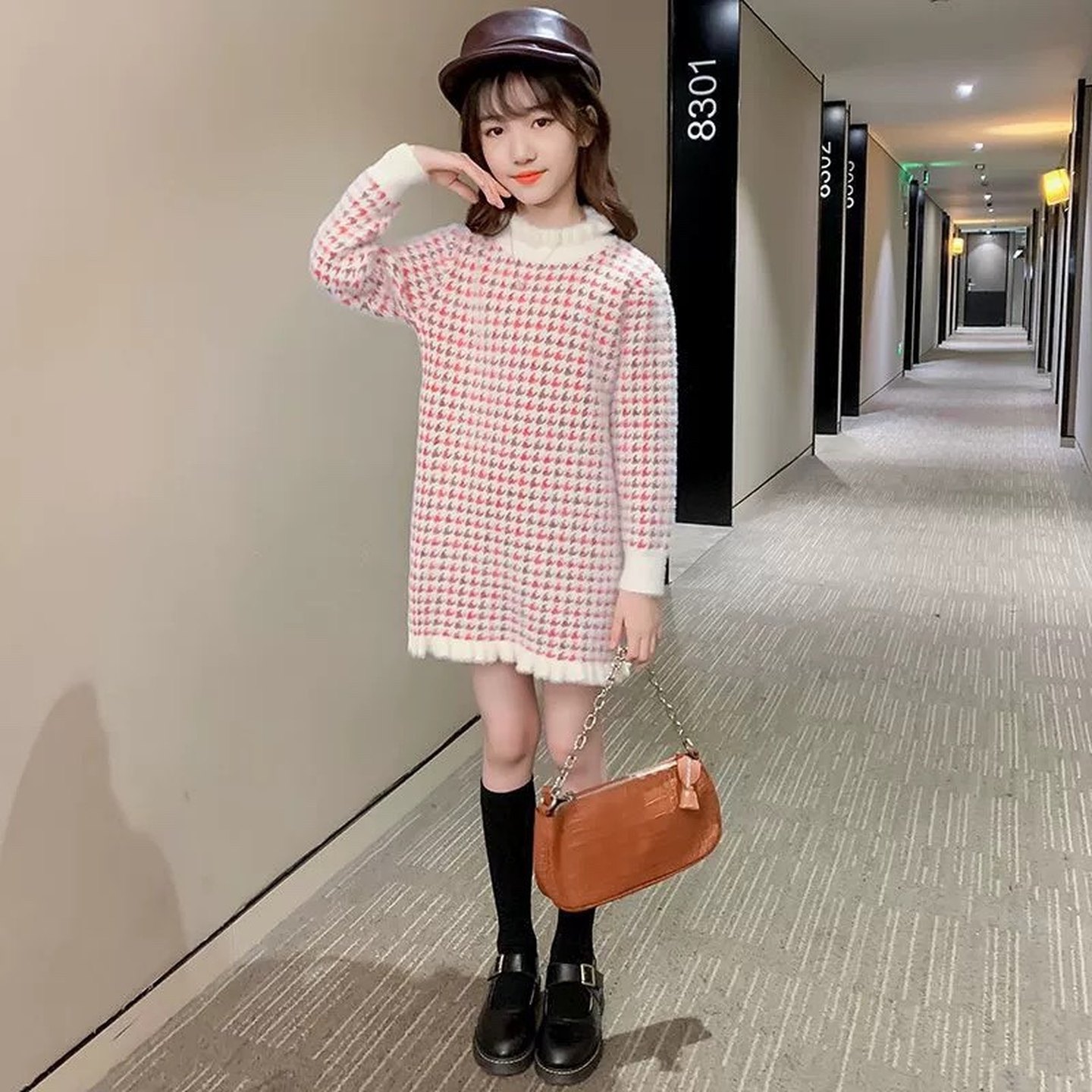 秋冬小女孩中长款毛衣裙针织衫