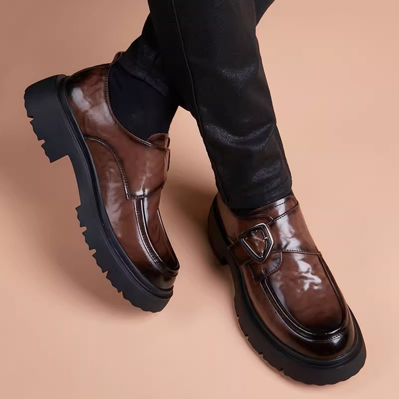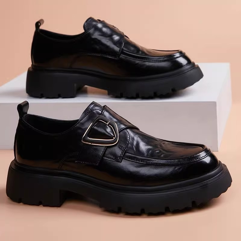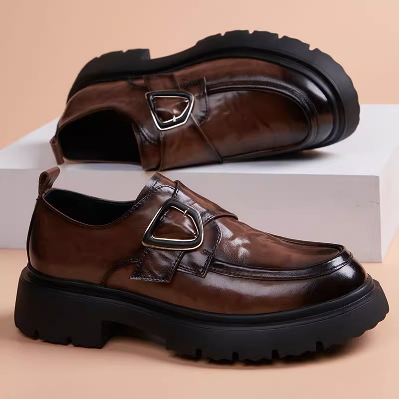 皮鞋男士春秋真皮透气商务正装男鞋2025新款一脚蹬休闲厚底德比鞋