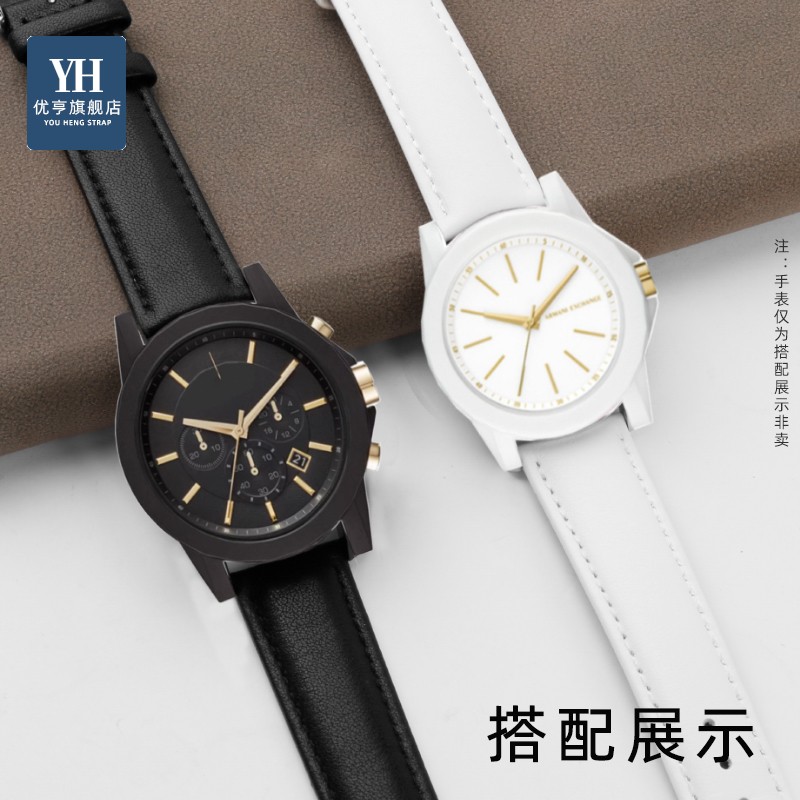 适配Armani阿玛尼白月光AX7126黑武士AX7105情侣男女真皮表带表链