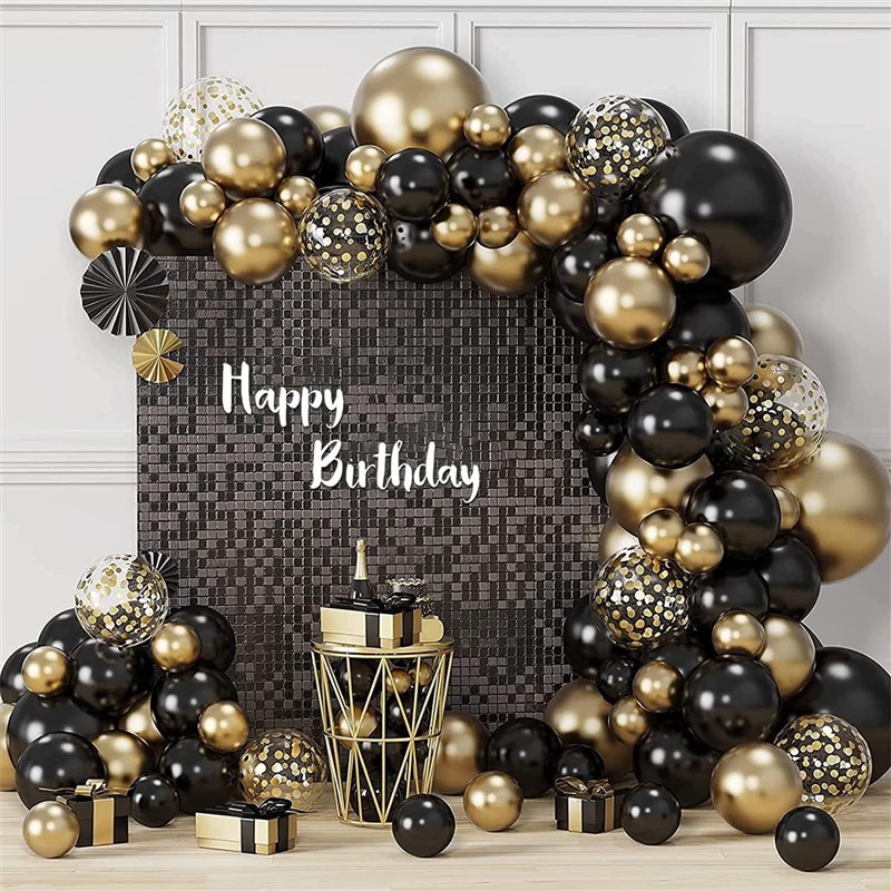 新款黑色金色气球拱门花环生日毕业结婚纪念日派对气球套餐