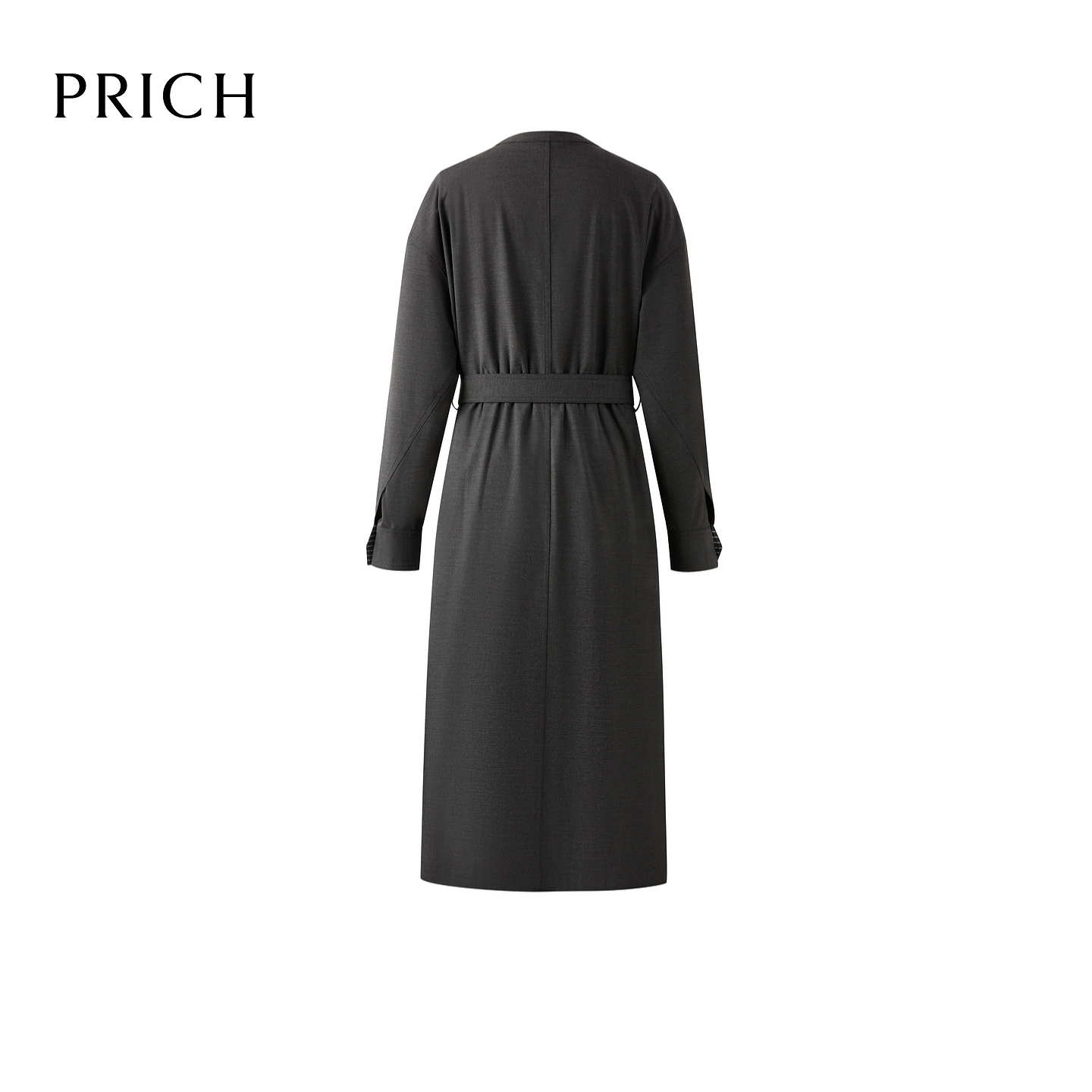 【零染羊毛】PRICH简约知性收腰连衣裙2025冬新款落肩宽松长裙女