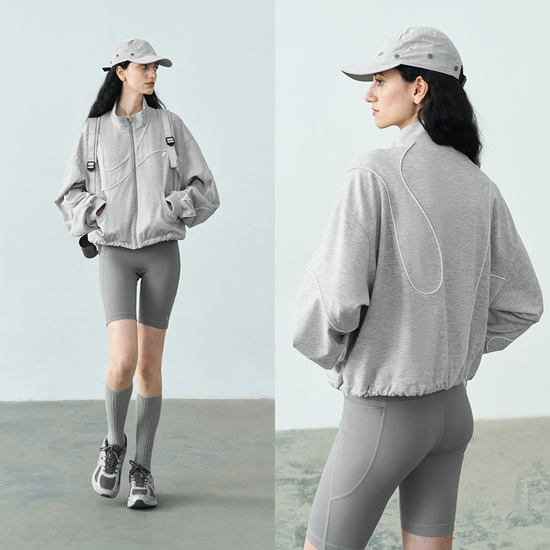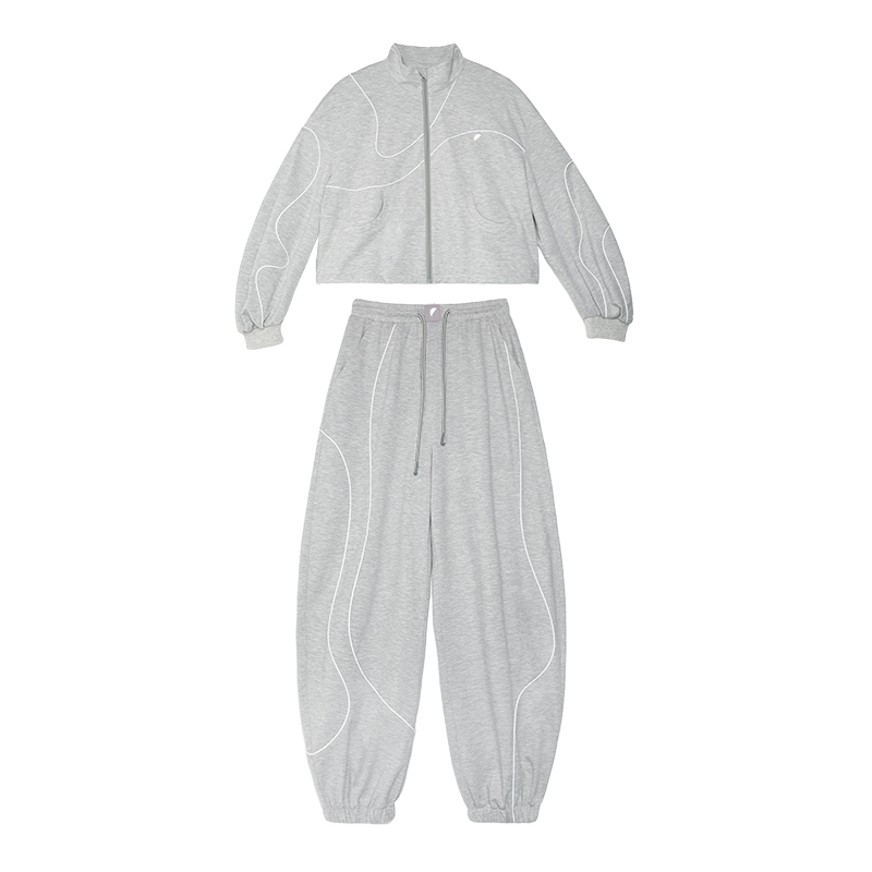 半圆原创设计师女装[运动]2025春秋宽松长袖灰色卫衣外套女套装