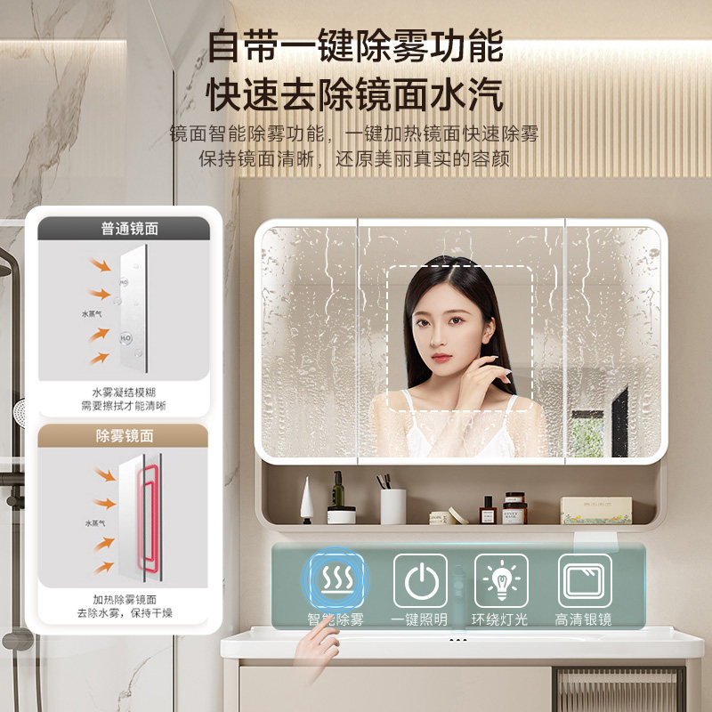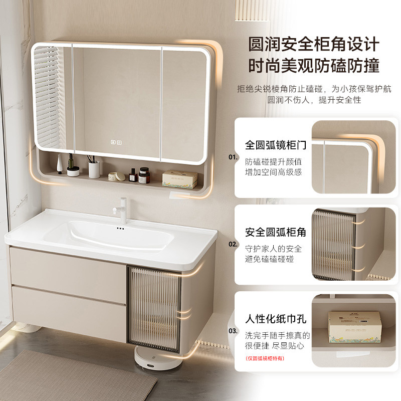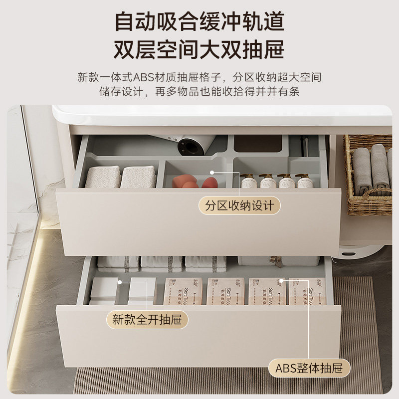 奶油风蜂窝铝大双抽屉浴室柜组合陶瓷一体盆洗漱台洗手洗脸盆吊柜