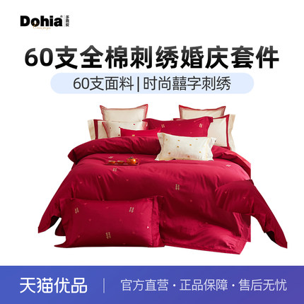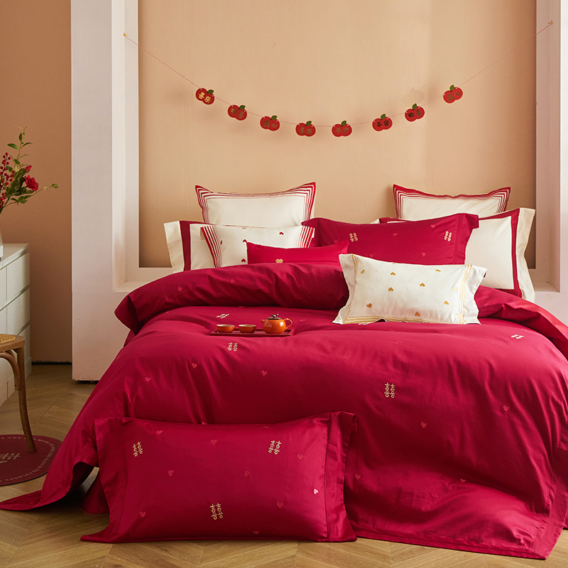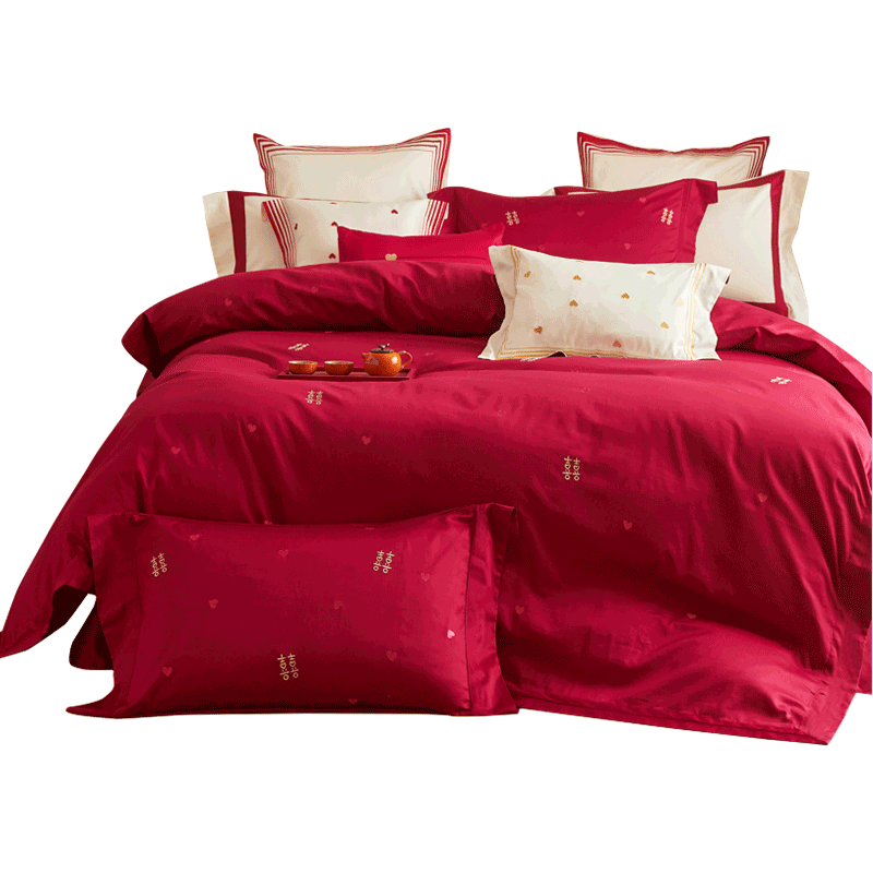 全棉婚庆60支纯棉四件套大红结婚床品婚礼红色床上用品