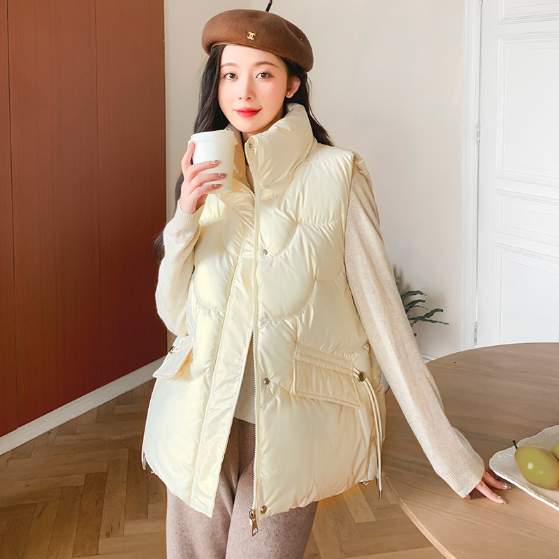 2025秋冬新款韩版纯色马甲女宽松免洗亮面背心羽绒棉学生马夹外套