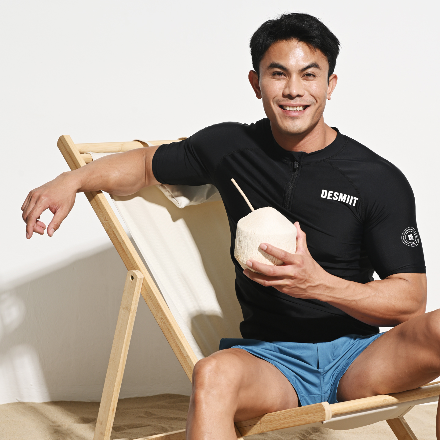 desmiit 男士训练速干抗氯短袖泳衣防晒冲浪潜水服成人浮潜水母衣