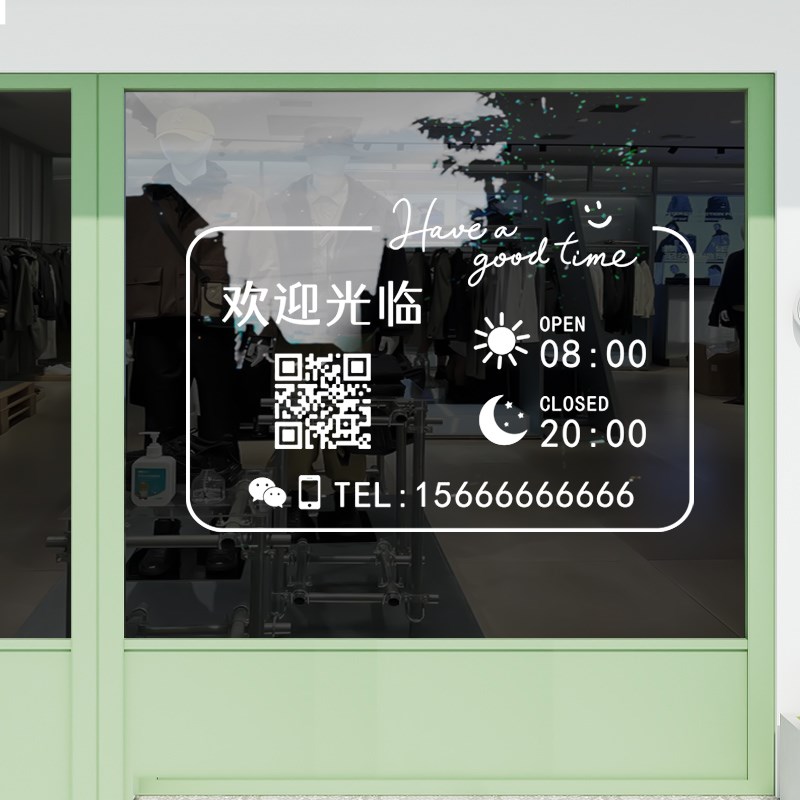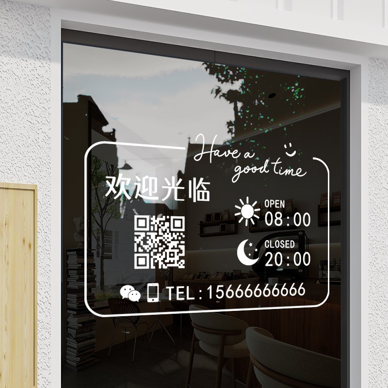 电话号码定制店铺玻璃门二维码贴纸创意餐饮奶茶店营业时间装饰贴