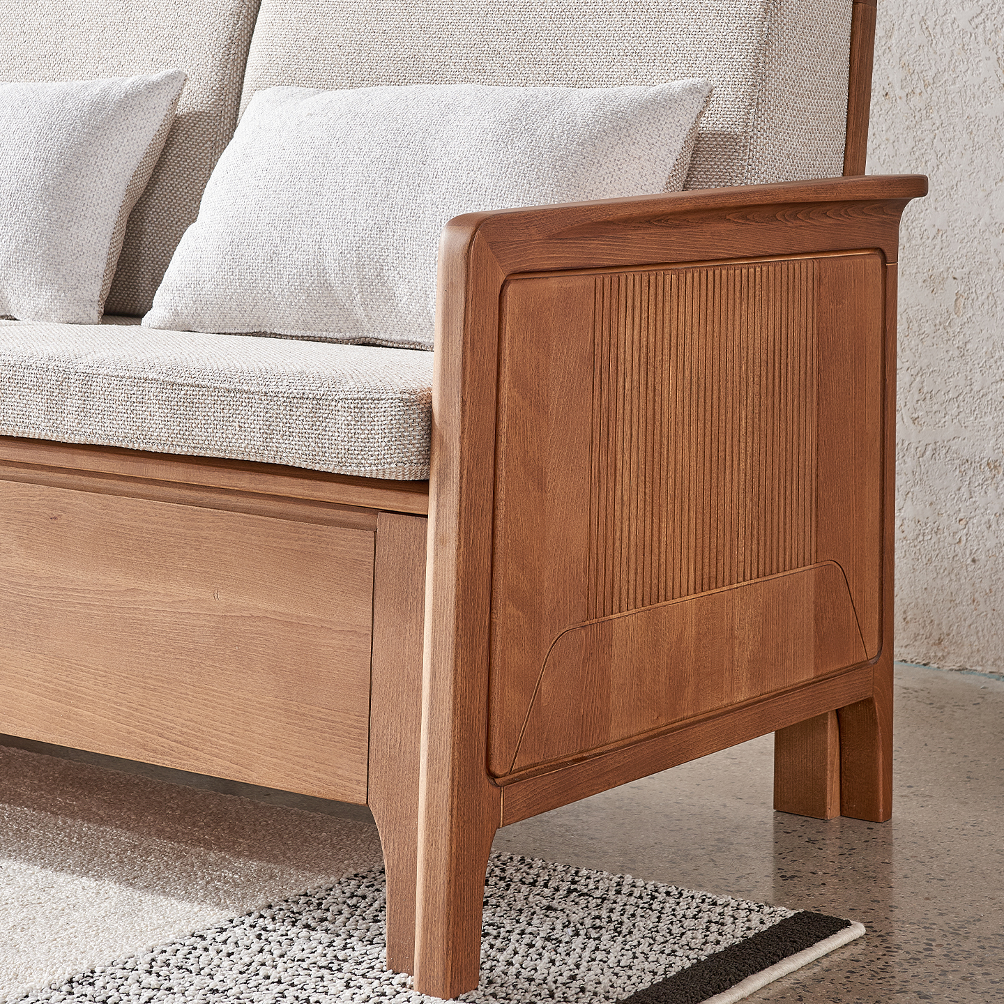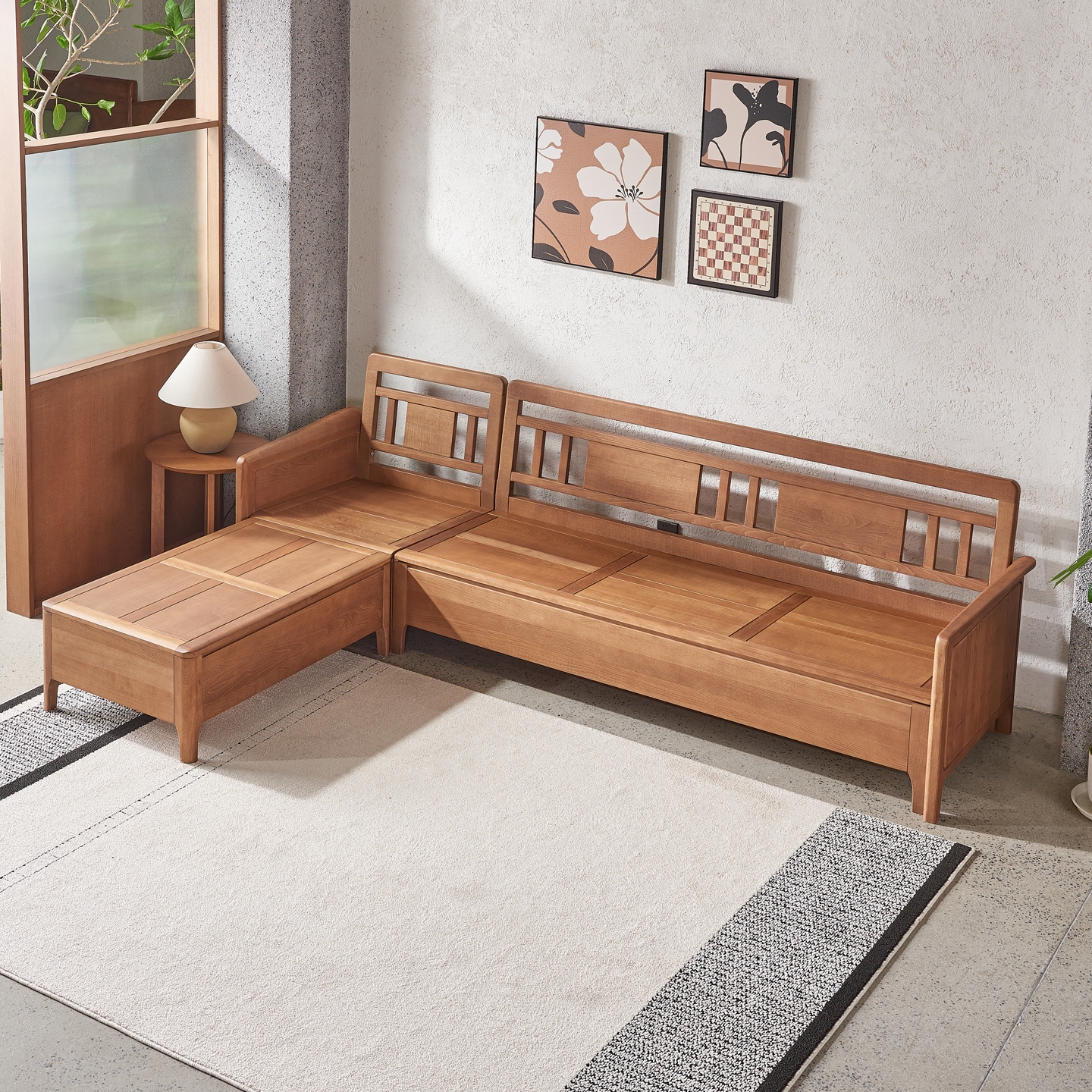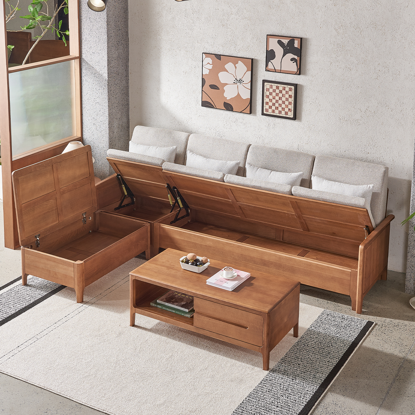 2025年新款储物实木布艺沙发组合中古风小户型直排转角新中式榉木