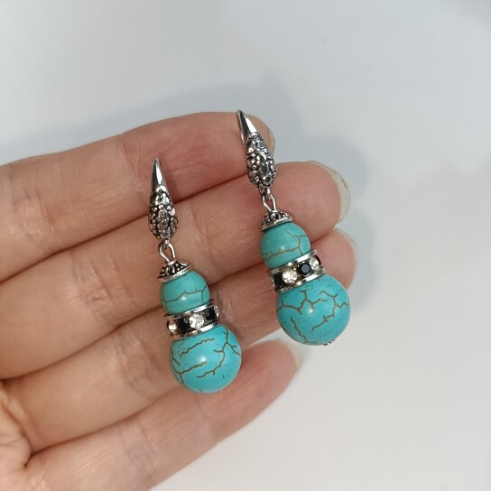 松石耳环925纯银原创手工蓝松石耳坠复古少数民族风耳饰藏族特色