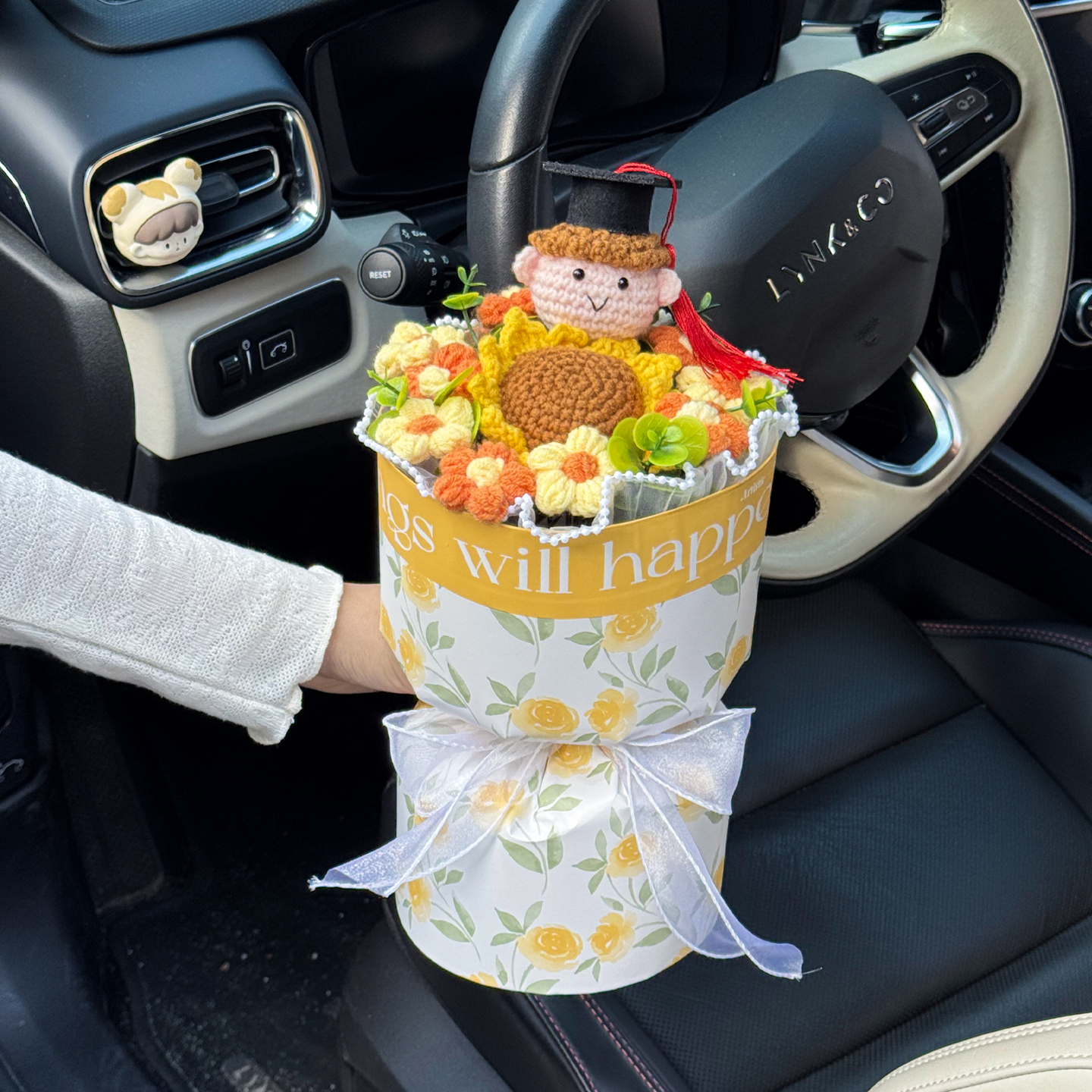 创意成品手工编织毛线向日葵毕业针织玩偶花束送朋友同学毕业礼物