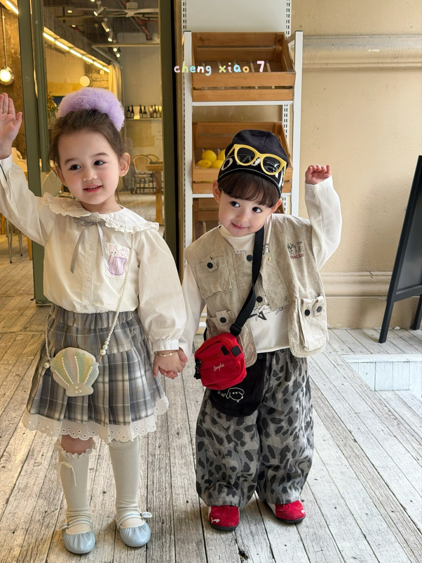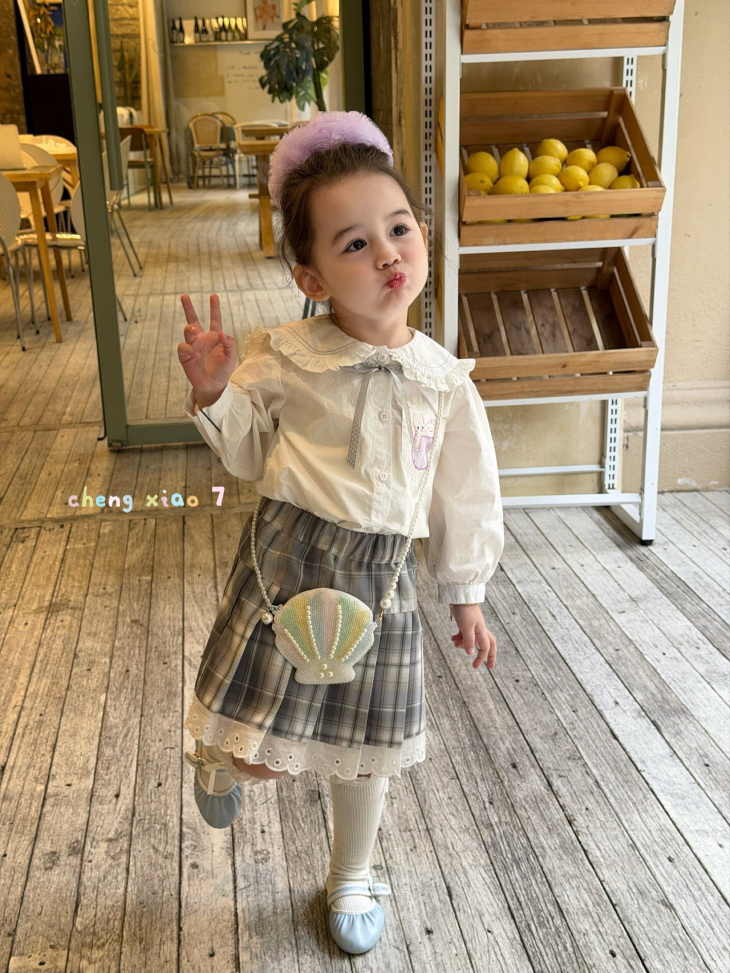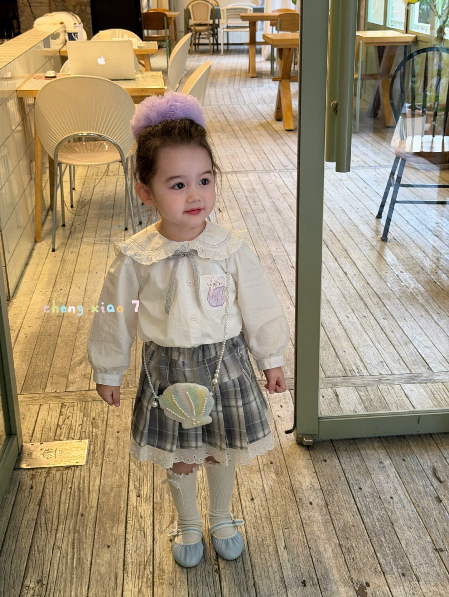 凡妈童装26春款女童小童韩版娃娃领衬衫格子半裙学院风套装裙两件
