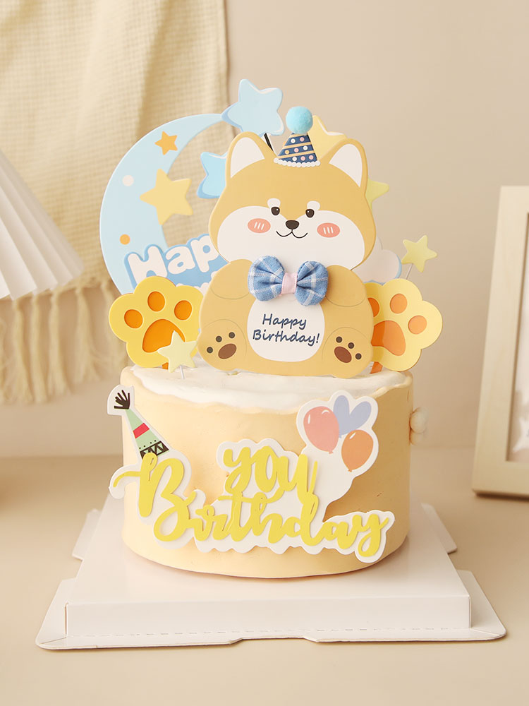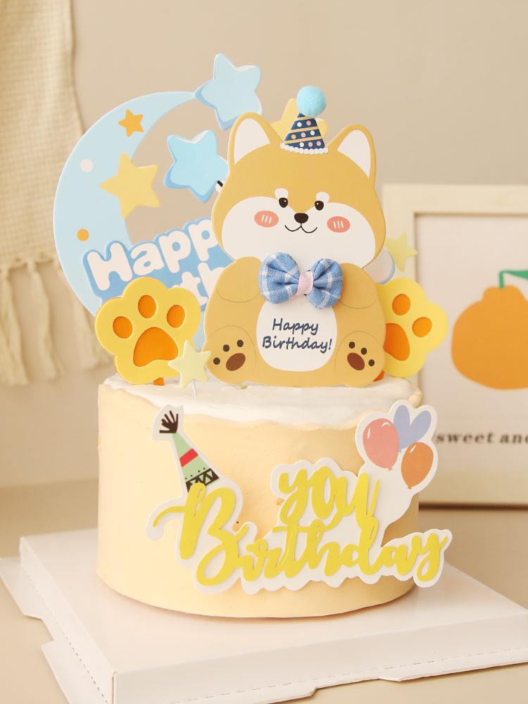 烘焙蛋糕装饰摆件领结生日帽小动物柯基老虎小兔子卡通生日插件