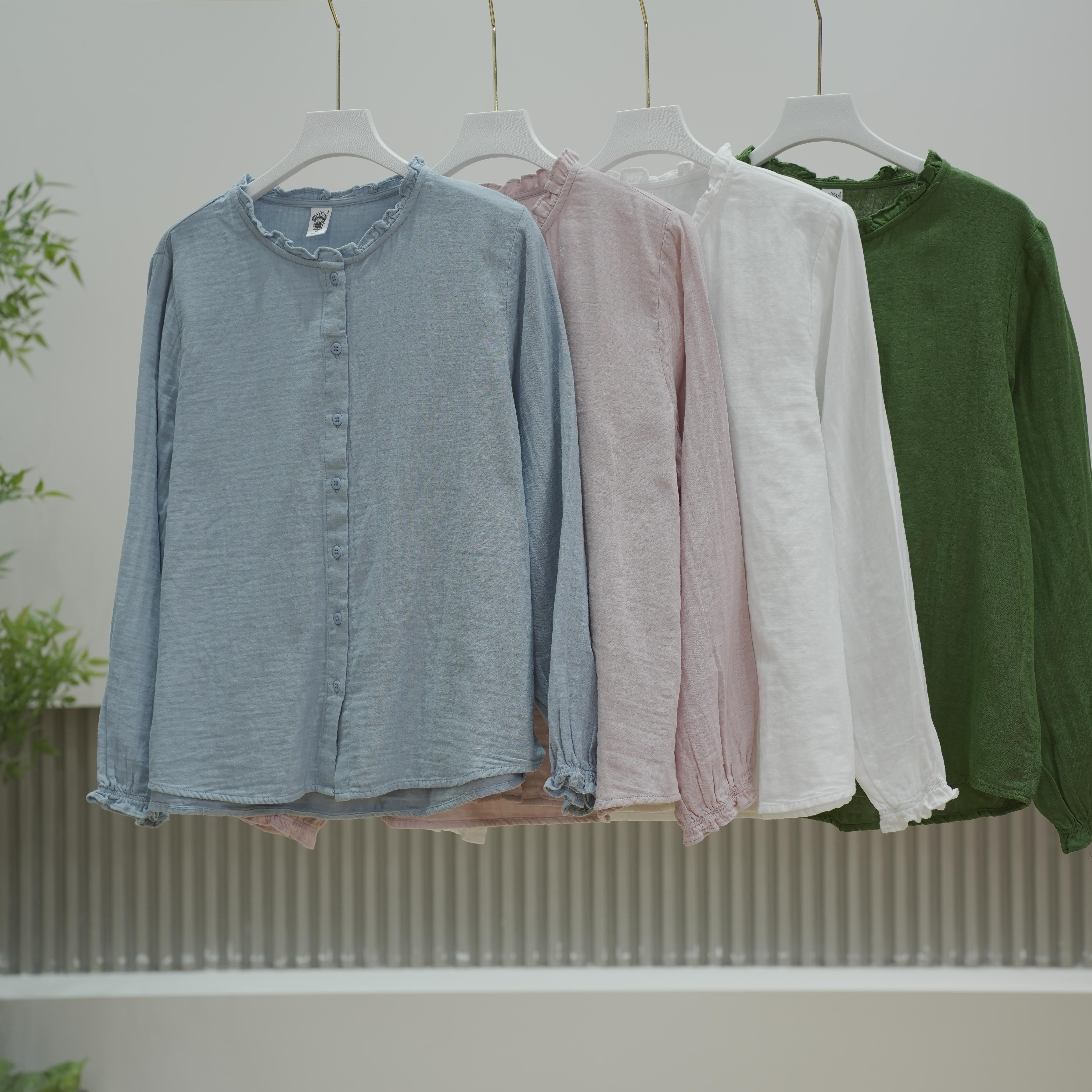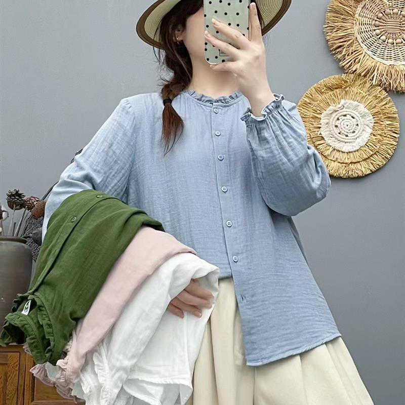 长袖衬衣女秋季宽松减龄上衣覆古荷叶领打底衫衬衫外穿