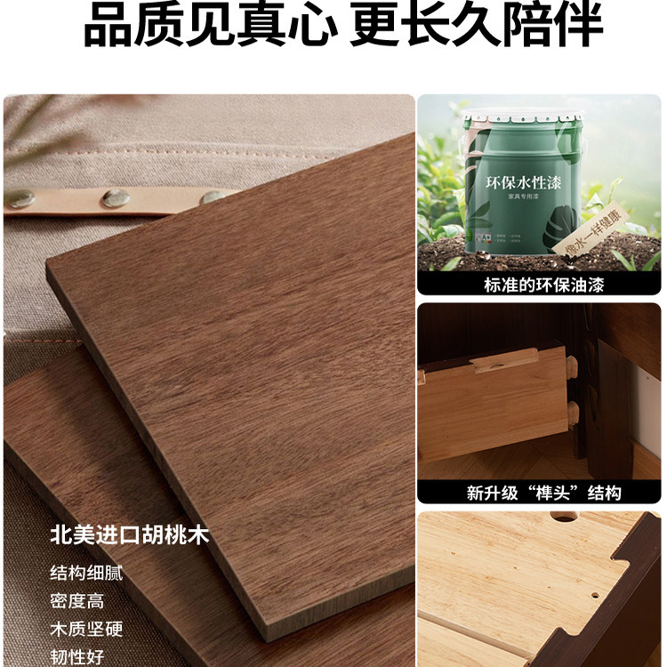 黑胡桃木全榫卯实木床主卧大床1.8米双人床家用1.5米新中式床卧室