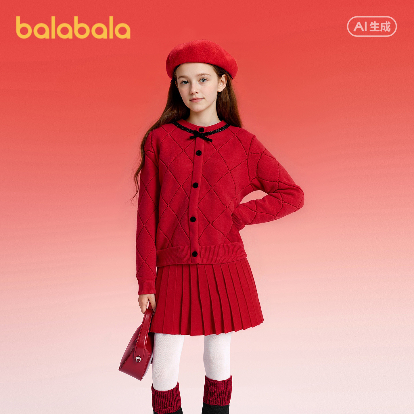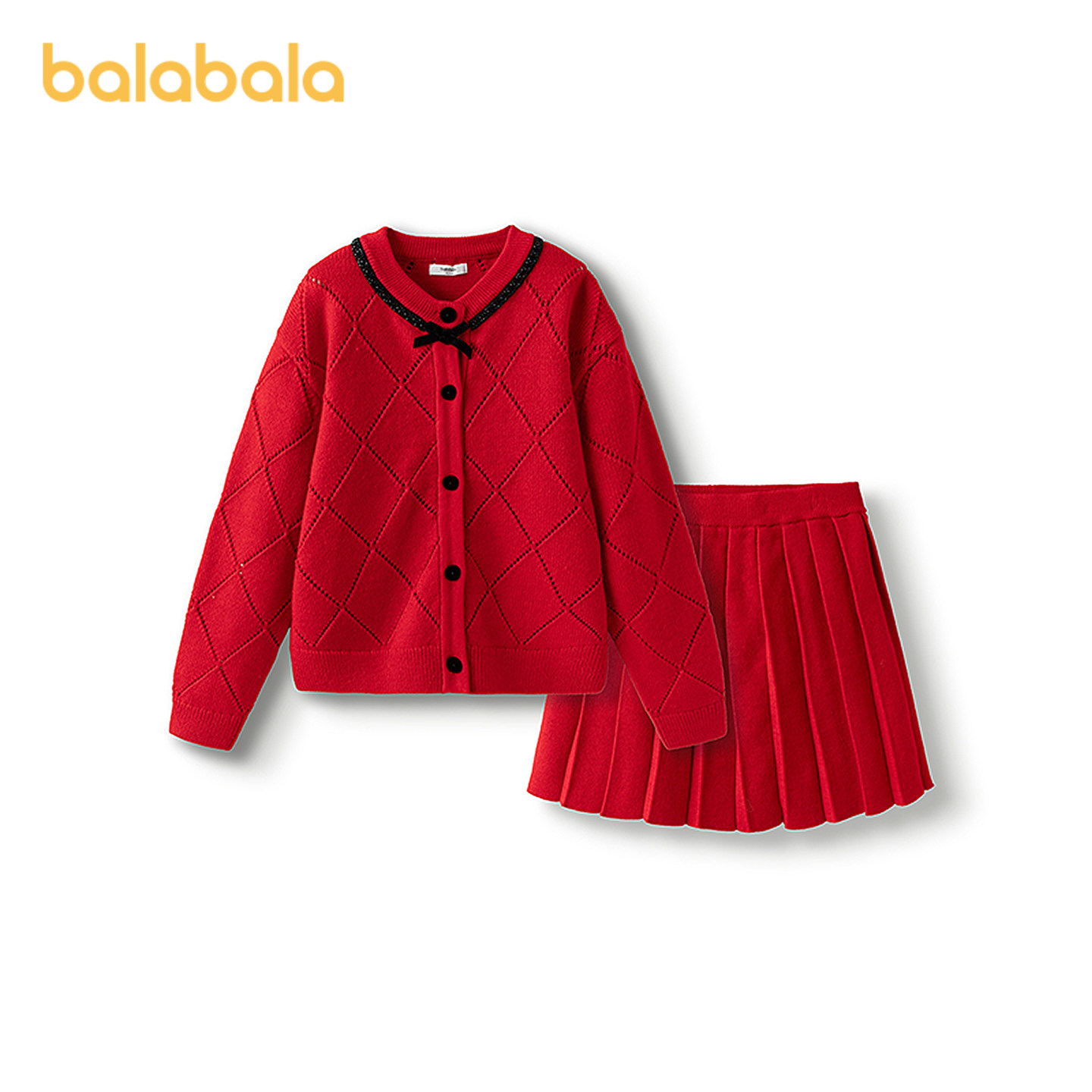 巴拉巴拉童装女童长袖套装儿童针织套裙春装两件套时尚洋气百搭