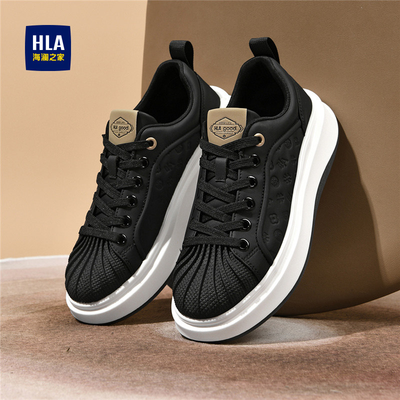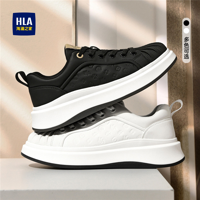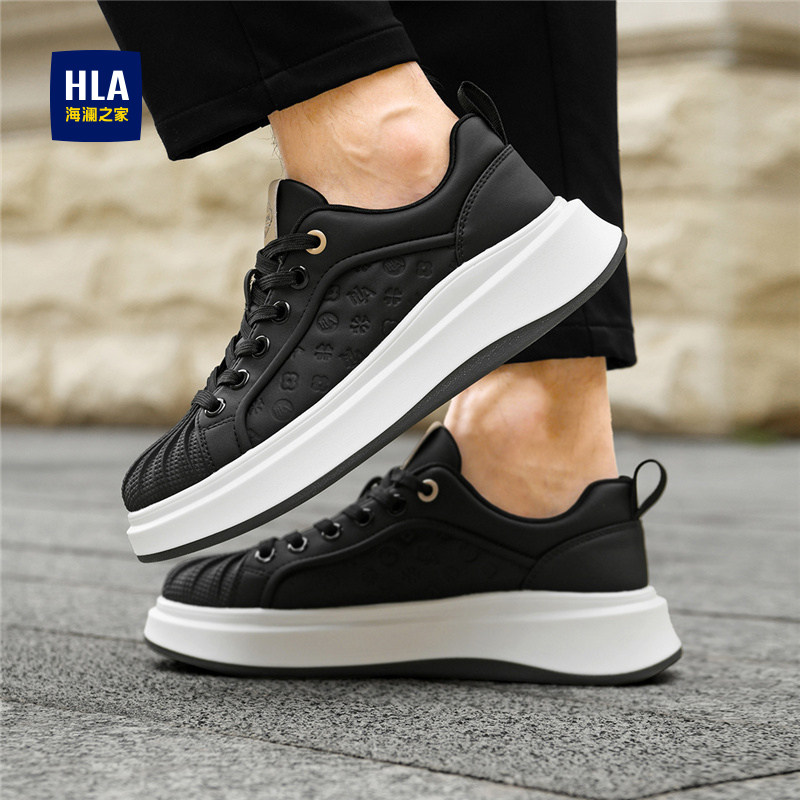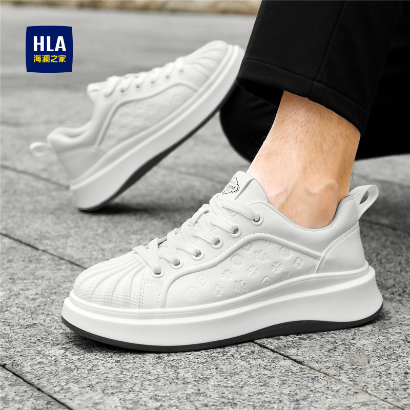 HLA/海澜之家男鞋2025新款厚底小白鞋男潮流时尚印花透气贝壳板鞋