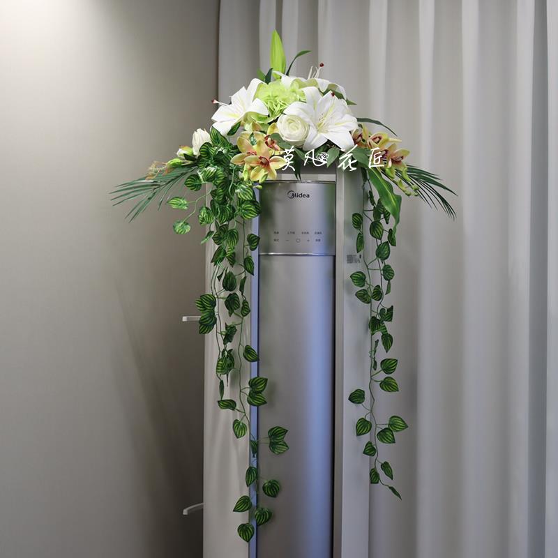 圆柱立式空调柜机上的摆花冰箱上装饰假花仿真花摆设餐厅桌花摆件