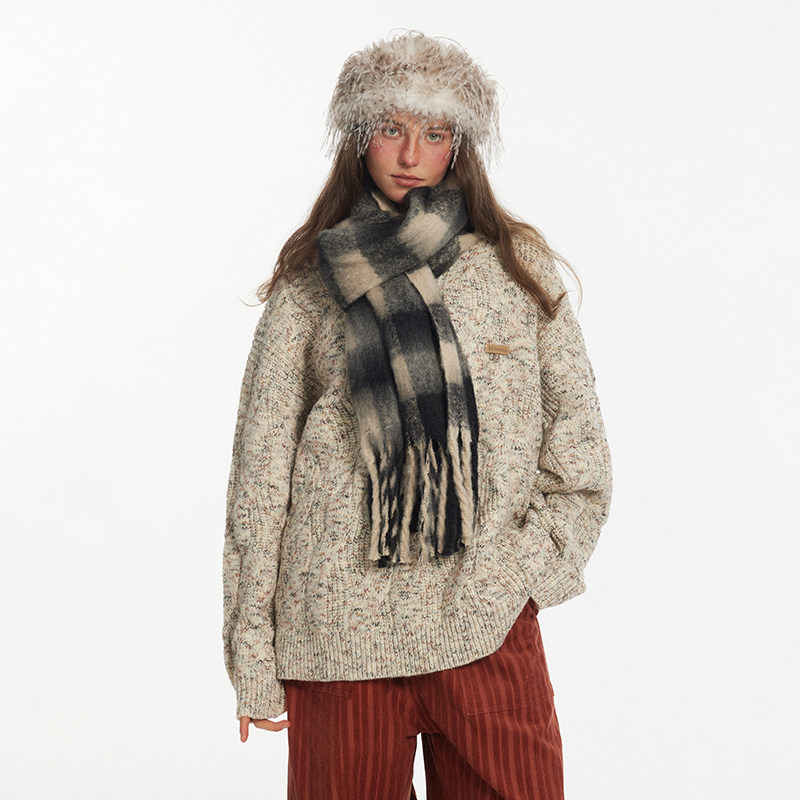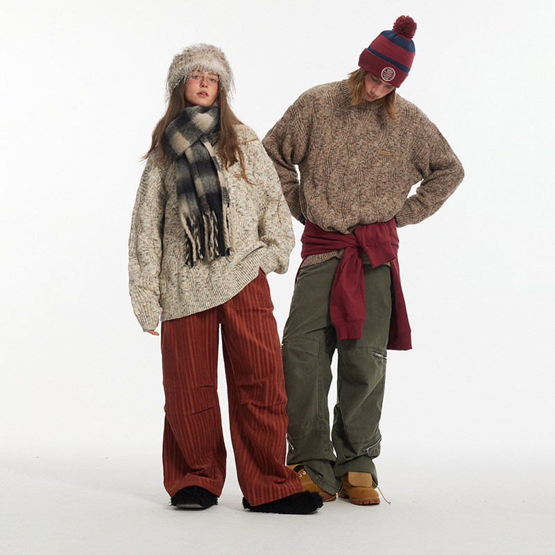 江南先生NewJNXS美式复古绞花圆领毛衣春秋男女保暖加厚针织衫潮