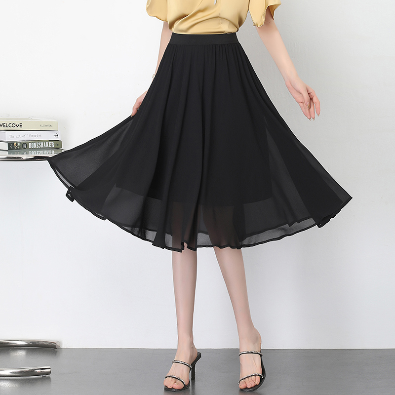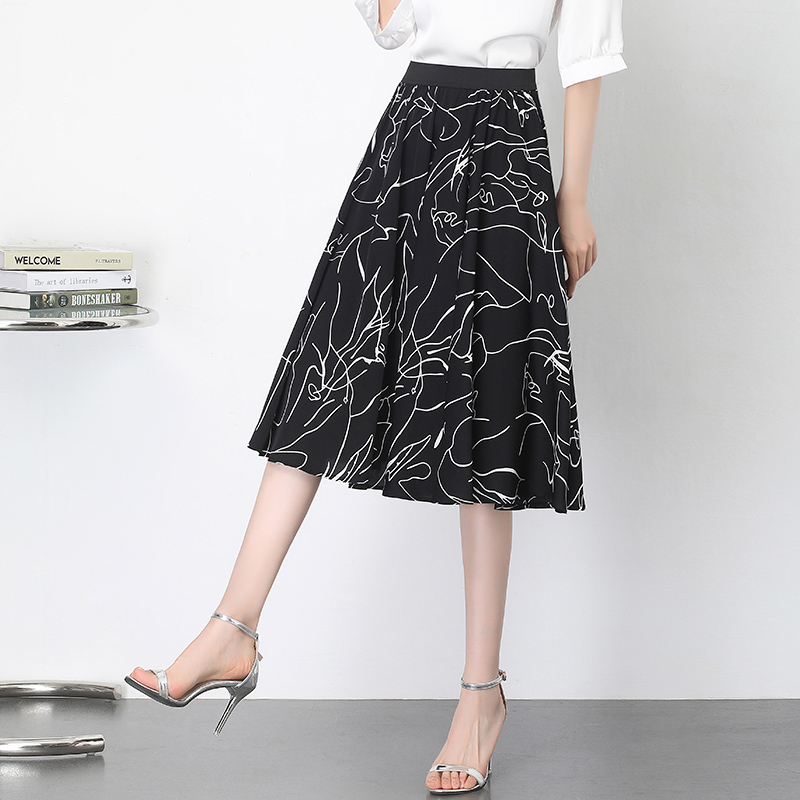 印花雪纺垂感半身裙女夏2023新款中长款百褶裙宽松显瘦a字大摆裙
