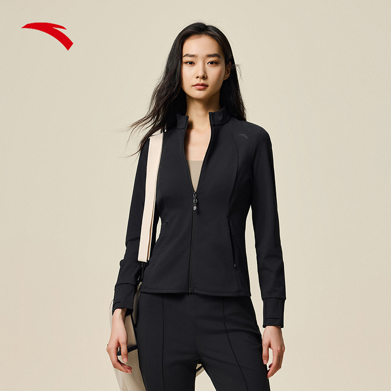 安踏小蛮腰鱼骨外套丨女2025秋款修身显瘦针织立领夹克运动上衣