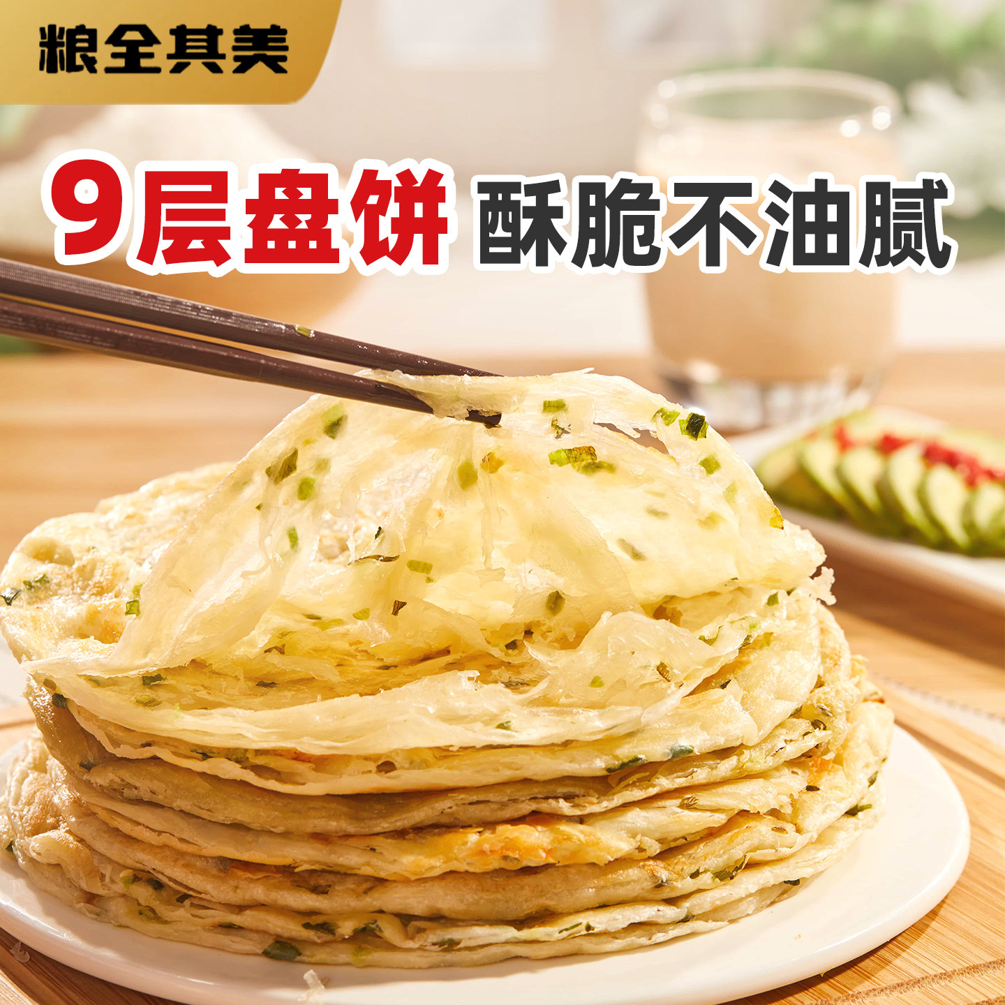 粮全其美轻食鲜葱葱油饼营养早餐煎饼面饼皮家庭装手抓饼正品速食