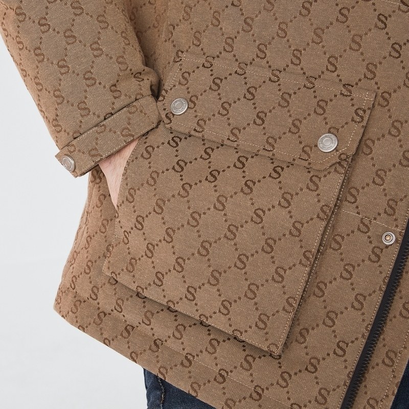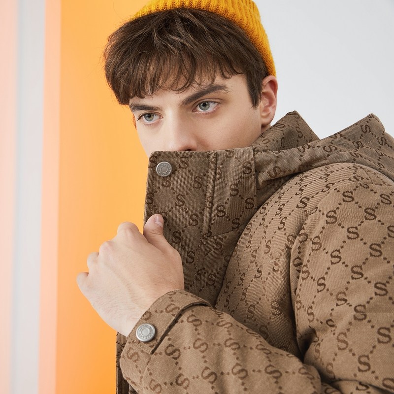 【清仓】柒牌羽绒服冬季时尚百搭提花可拆卸帽厚款白鸭绒羽绒外套