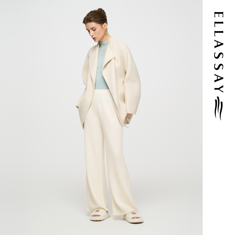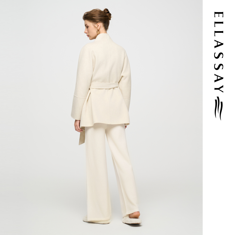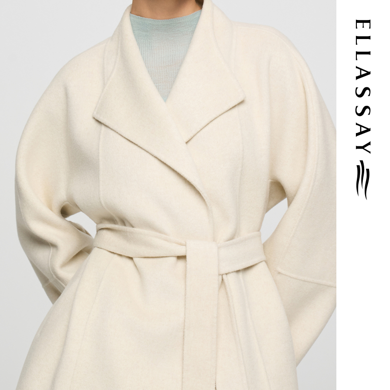 歌力思奥莱2025秋冬新款绵羊毛气质浴袍式毛呢大衣女EWD363D04100