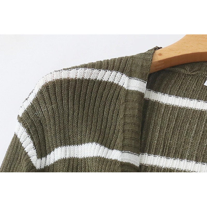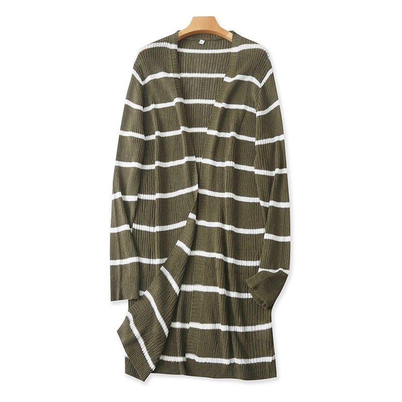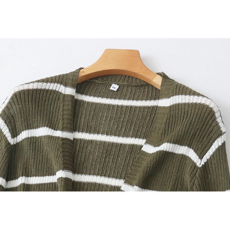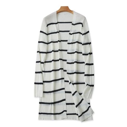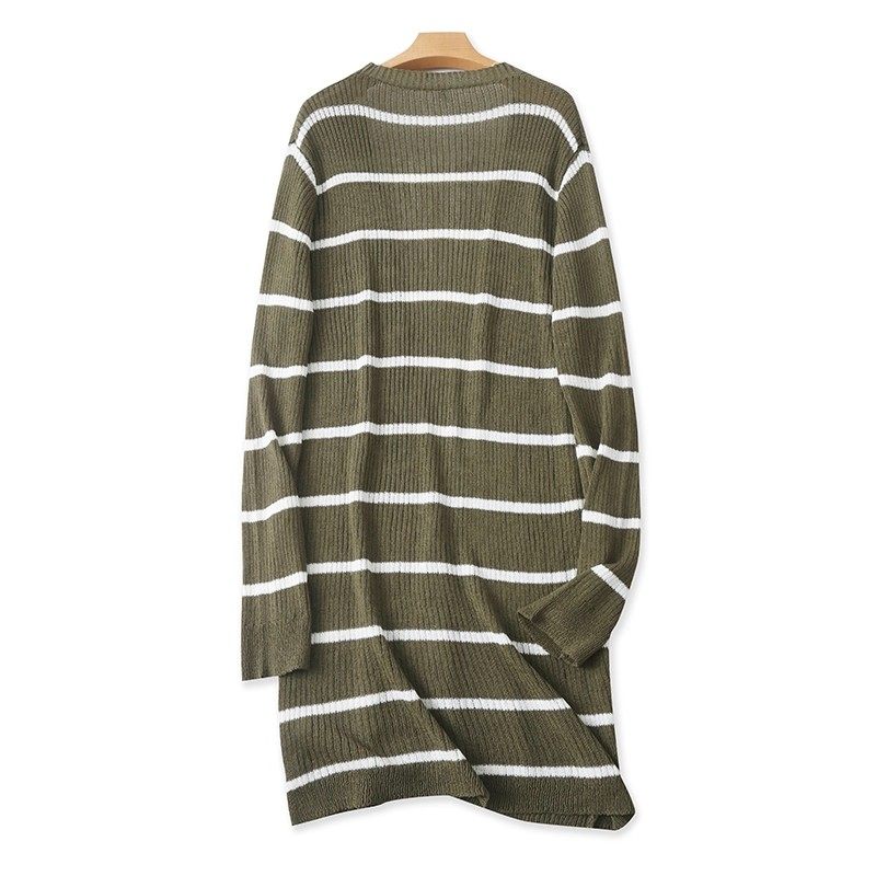 外贸针织横条纹开衫中长款时尚