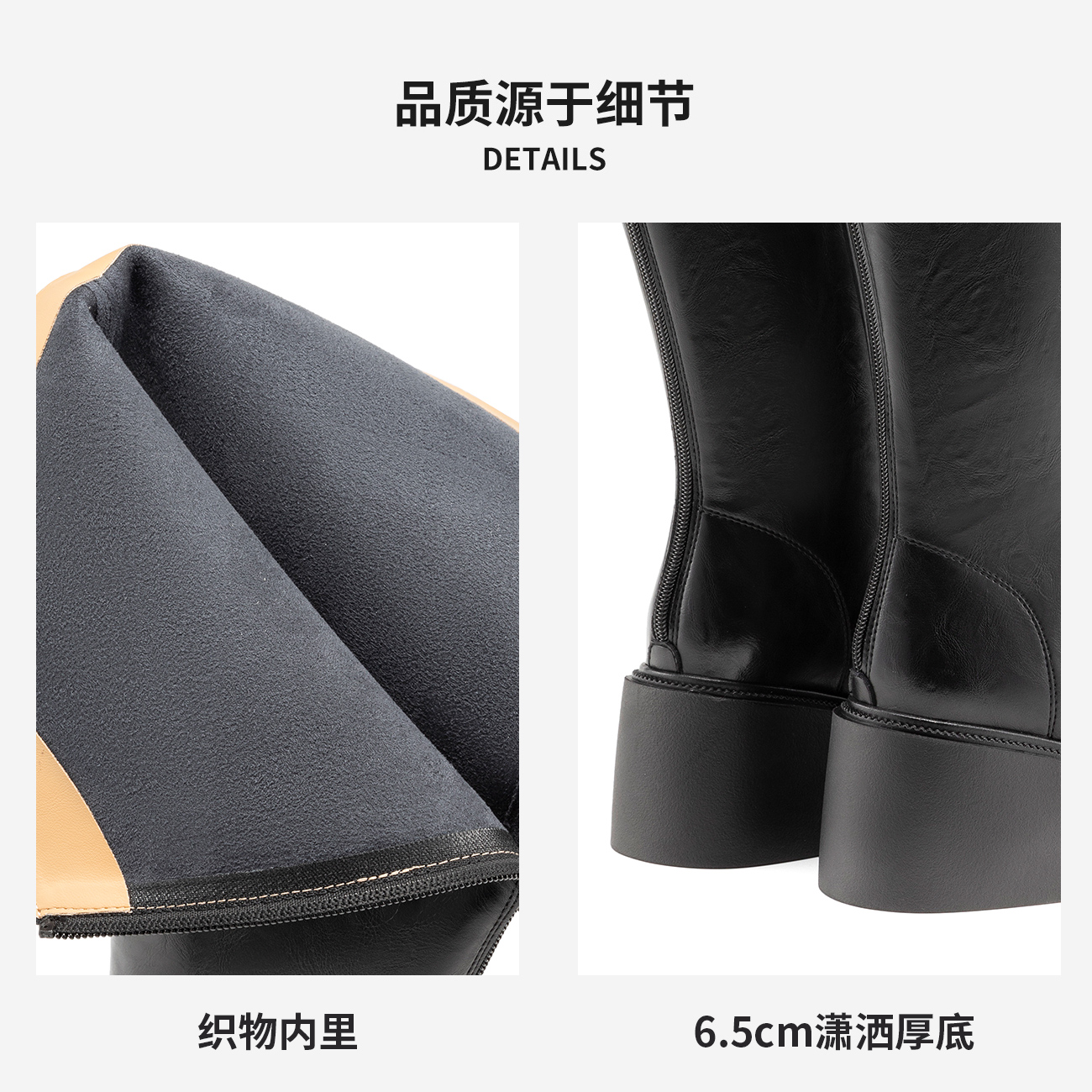 奥康女鞋 冬季新款复古长筒骑士靴厚底粗跟增高时装靴潮流