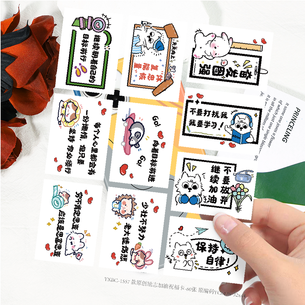 【大图释官方授权】120张励志加油祝福卡贴纸diy手账素材桌面学习语录激励儿童自粘手机壳行李箱标签立体贴画