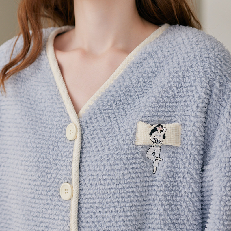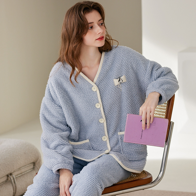 芬腾珊瑚绒睡衣女秋冬保暖加厚加绒法兰绒休闲宽松大码家居服套装