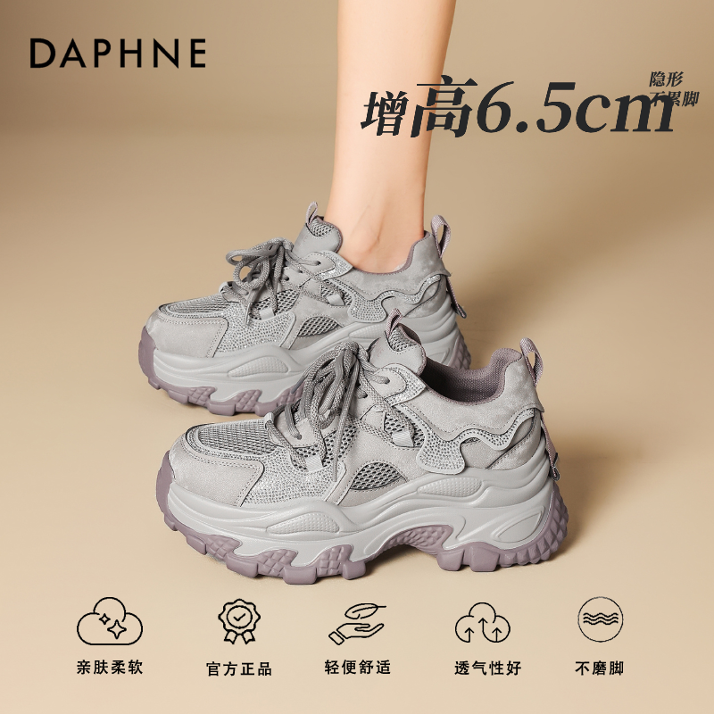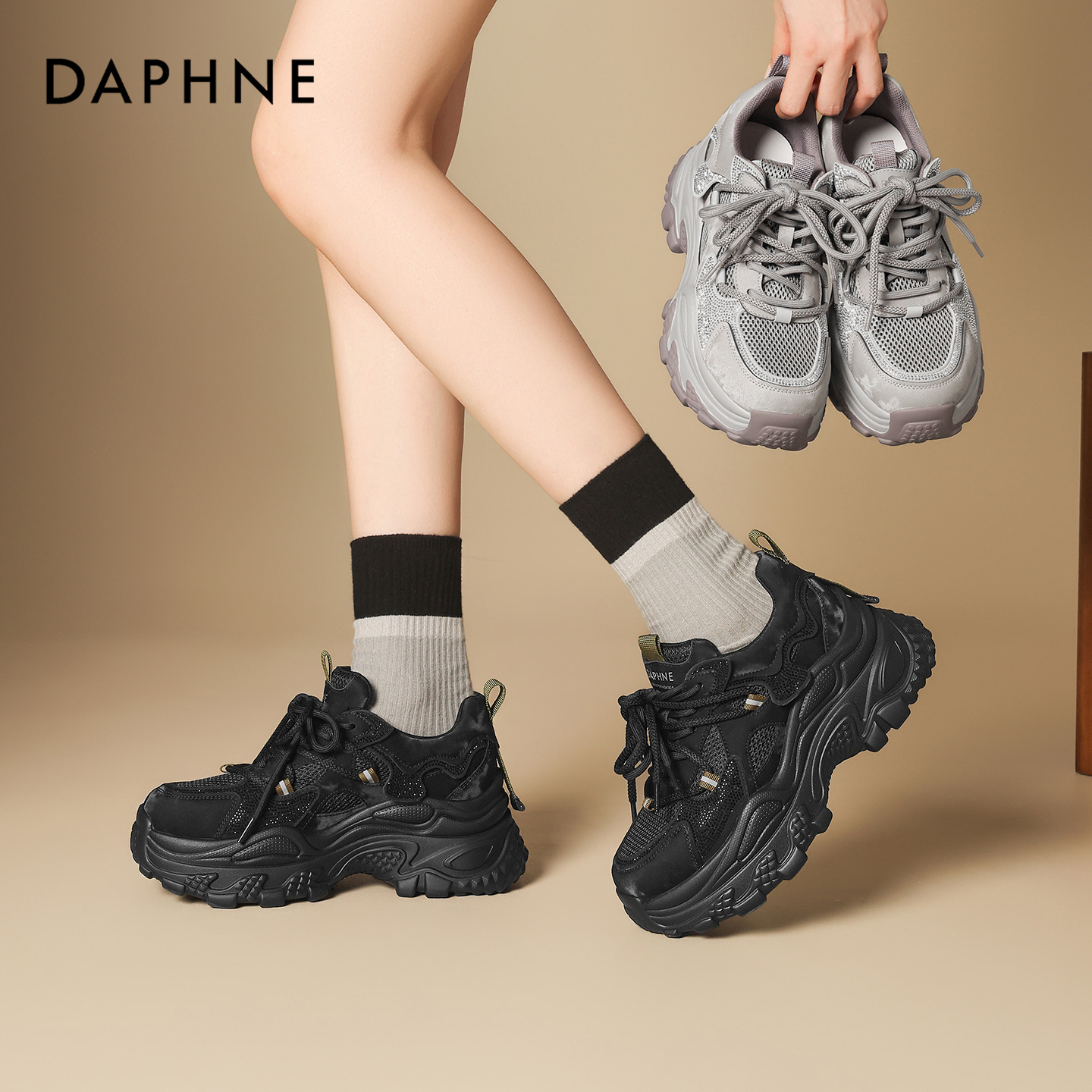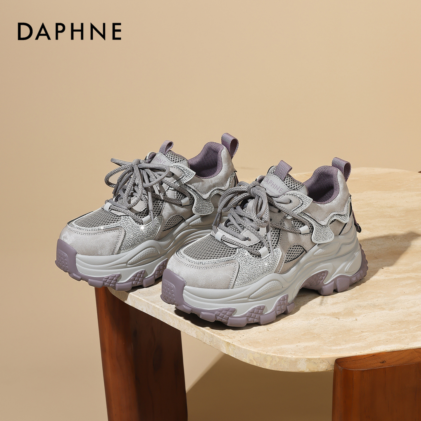 达芙妮2025冬季新款运动鞋女休闲ins百搭厚底增高加绒老爹鞋