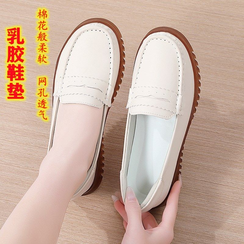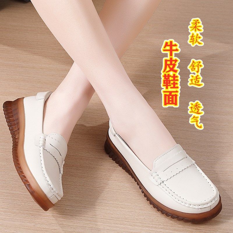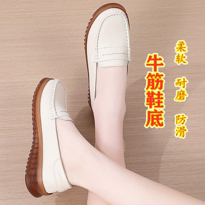 真皮软底豆豆鞋女2025春夏浅口平底单鞋百搭防滑软底坡跟套脚女鞋