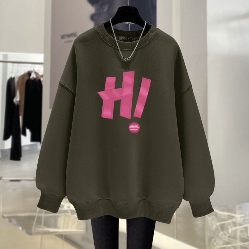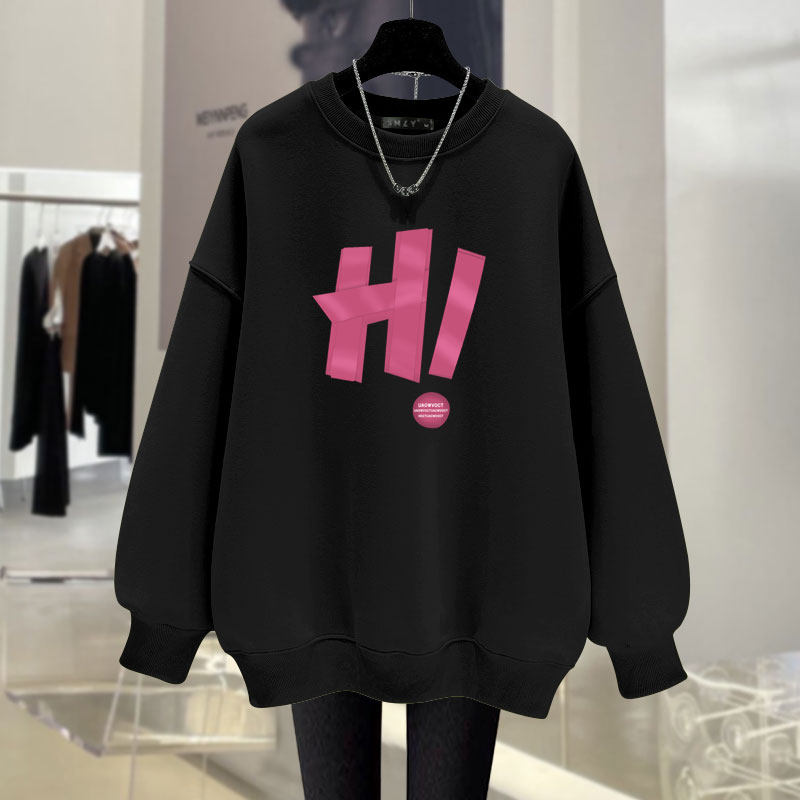 字母宽松套头圆领卫衣女2025春秋冬加绒加厚慵懒风中长款遮屁股潮
