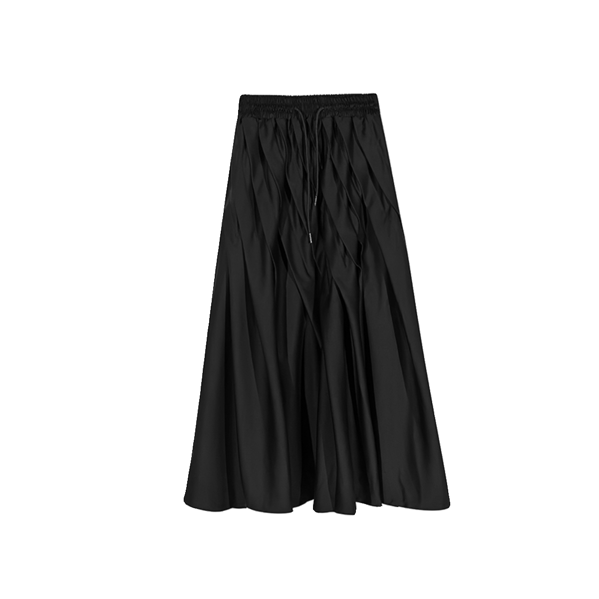 陆与山屿设计感小众多褶山本暗黑半身裙女士百褶裙子黑色A字长裙