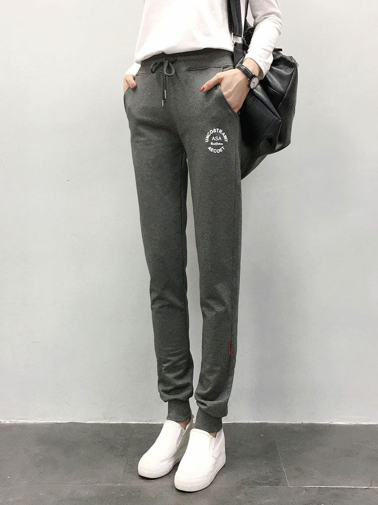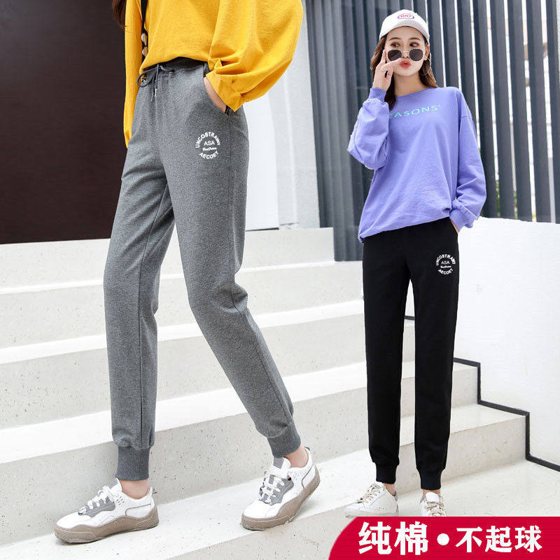 春秋季加长裤子女高个子超长运动裤加绒棉质小脚卫裤宽松束脚休闲