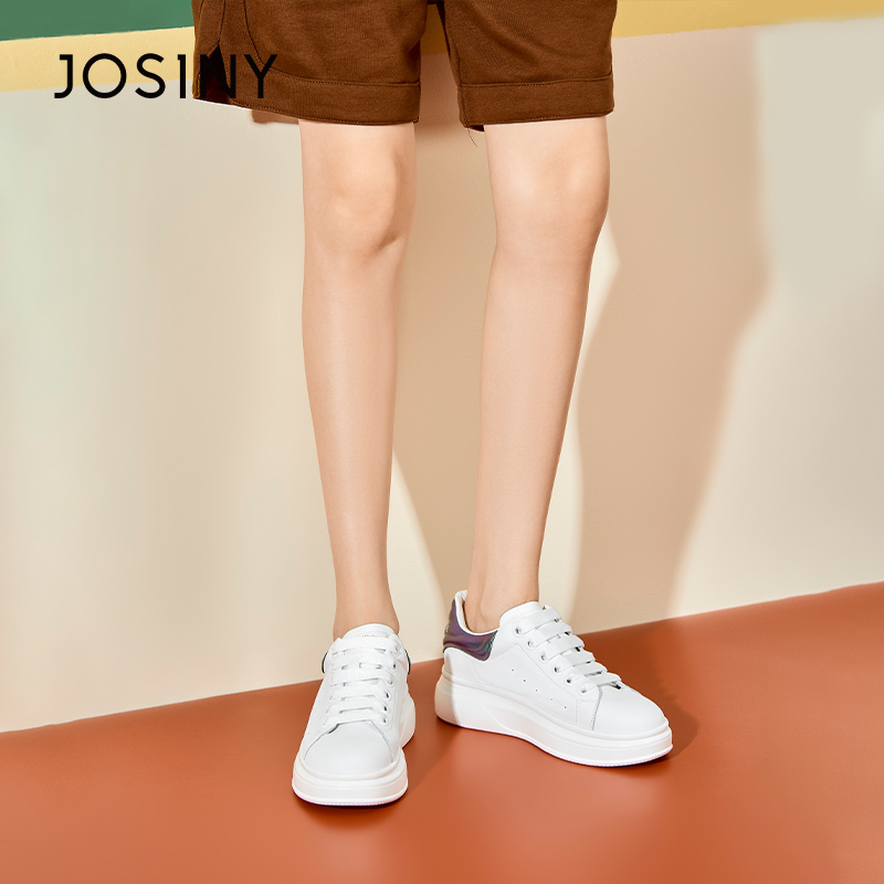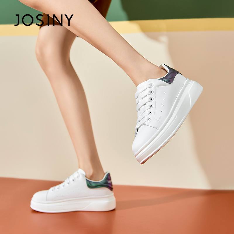 卓诗尼女鞋厚底板鞋春秋新款运动休闲鞋经典撞色小白鞋舒适百搭