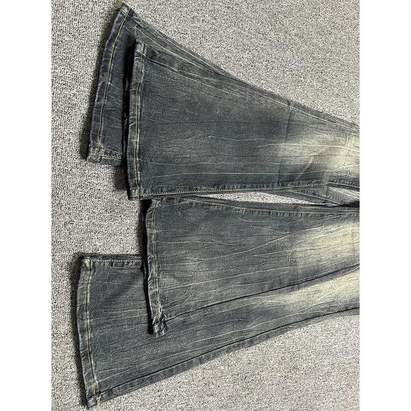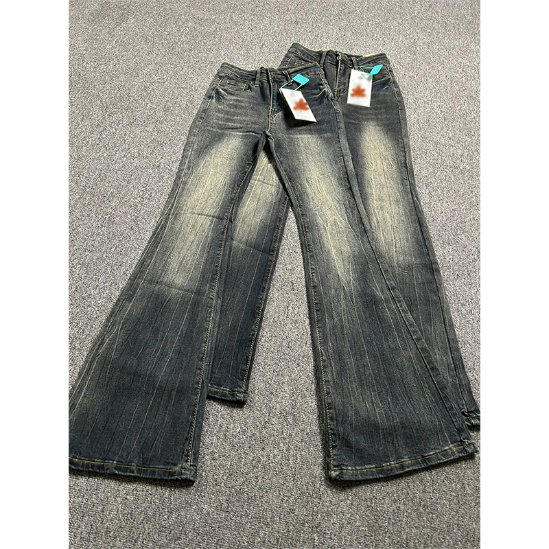 胖mm黑灰色微喇牛仔裤女大码女装弹力裤子宽松显瘦高级感阔腿长裤
