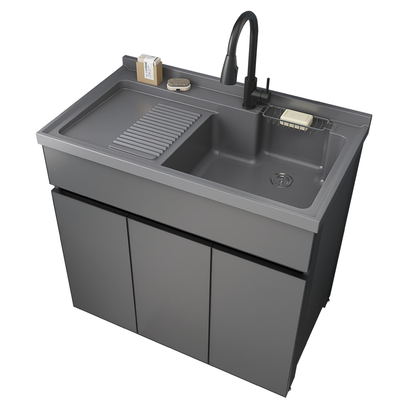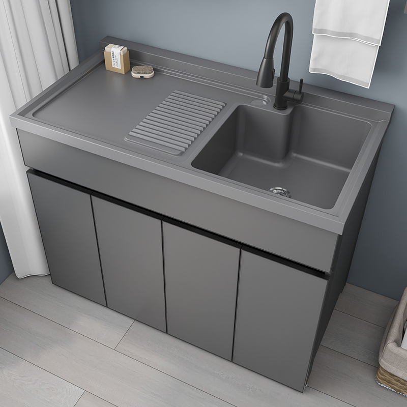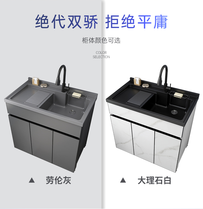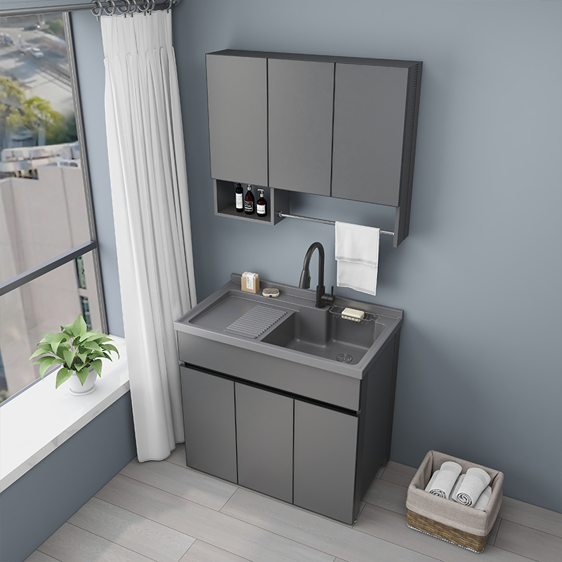 太空铝洗衣柜阳台定制带搓板浴室柜组合洗衣池洗手台盆一体柜简约