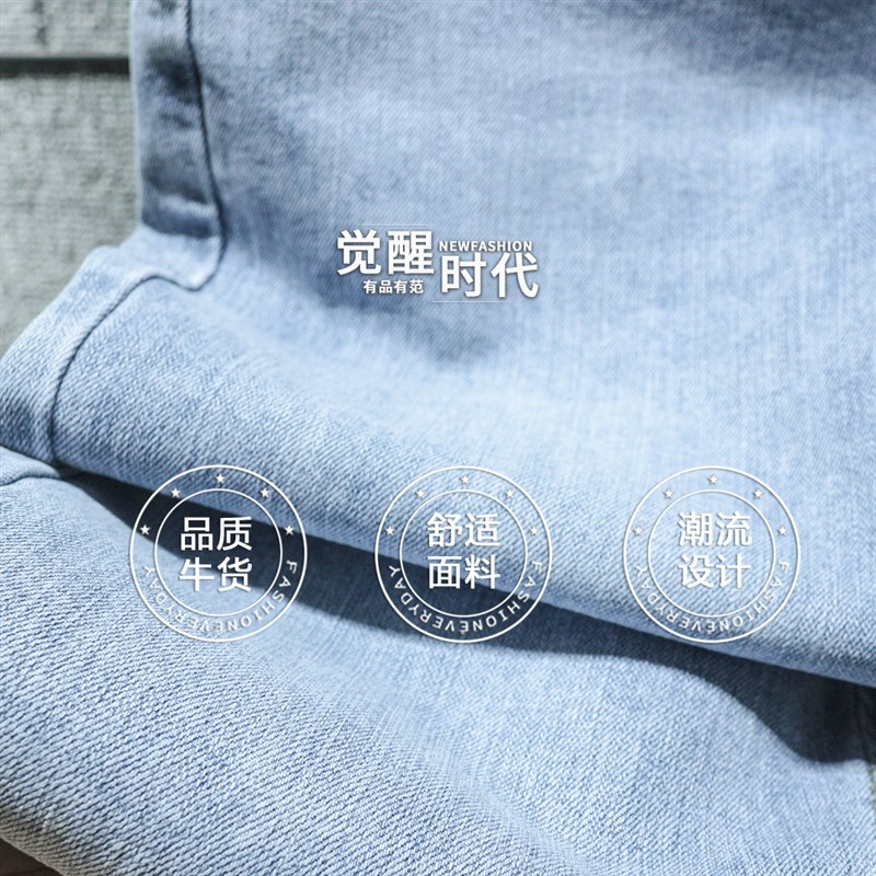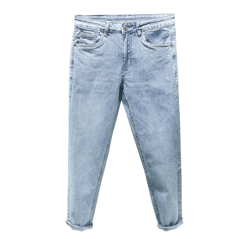 浅色夏季薄款 九分牛仔裤男修身小脚小直筒高级休闲弹力新款淡色