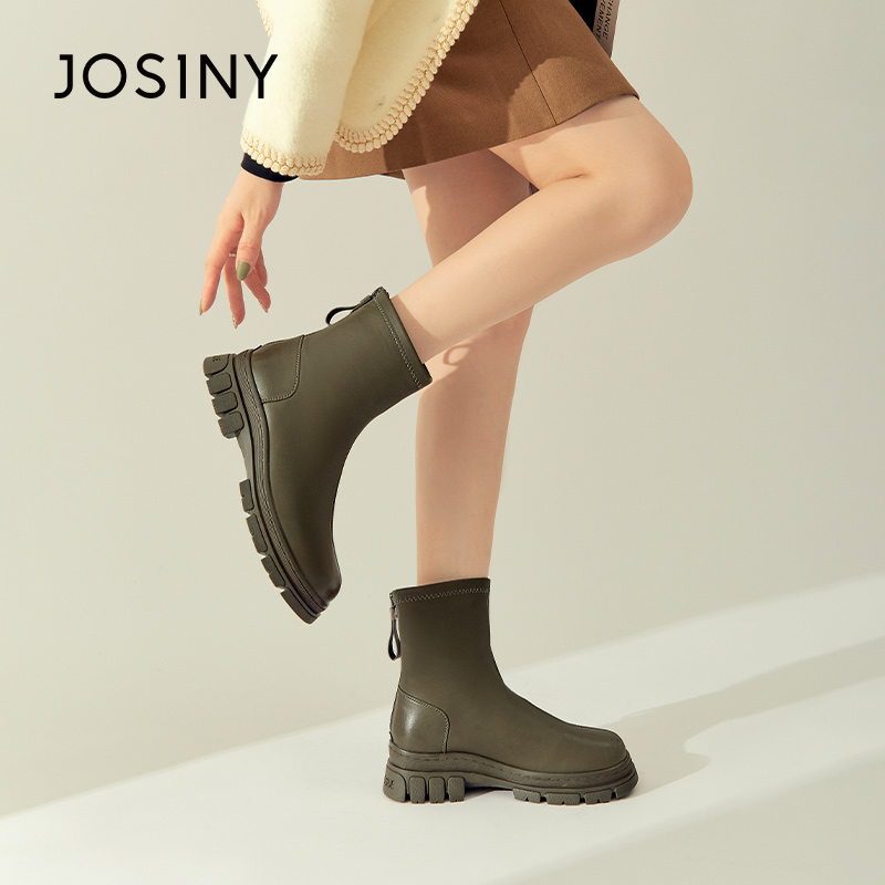 卓诗尼撤柜正品冬季女短靴圆头低跟后拉链休闲百搭通勤日常切尔西