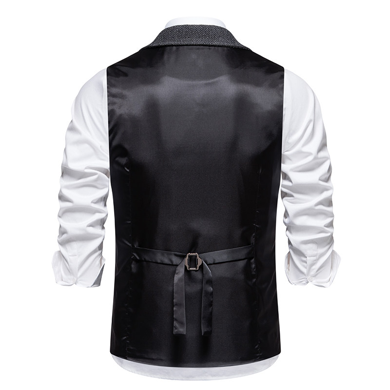 英伦复古休闲绅士毛呢西装马甲男咔叽风拼接呢子外套大码猎装马夹