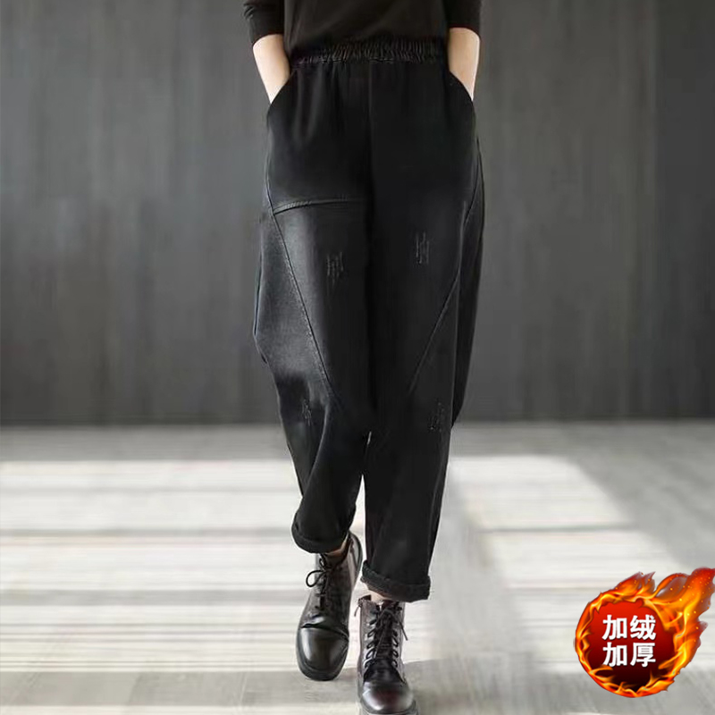 萝卜哈伦裤女加绒加厚牛仔秋冬