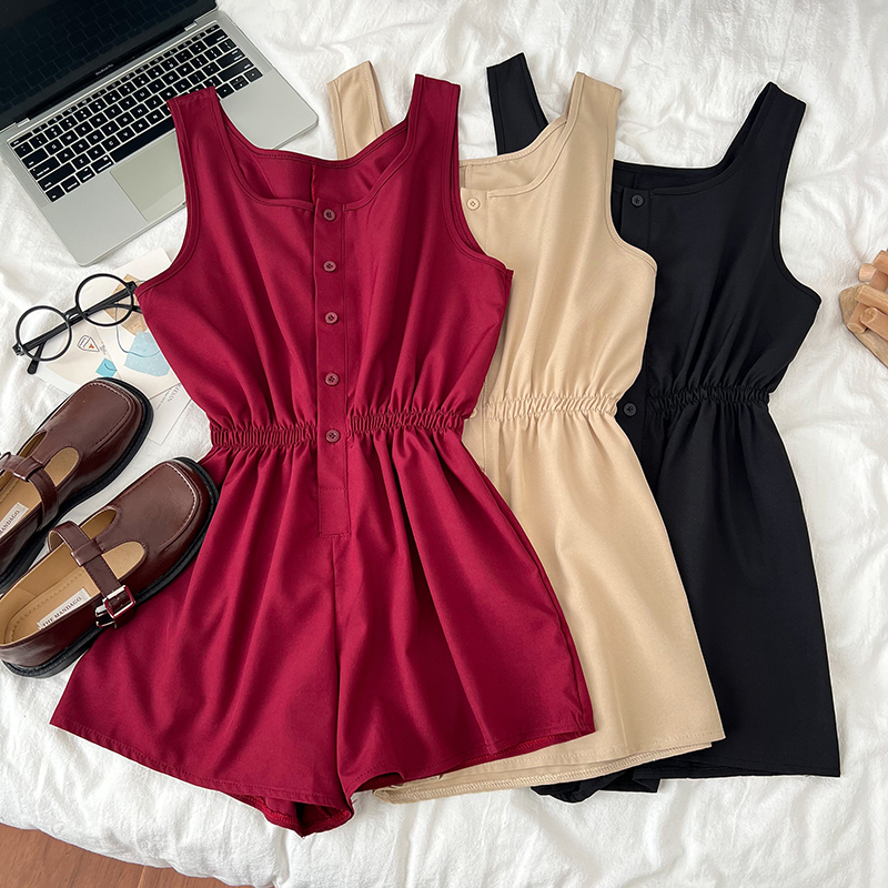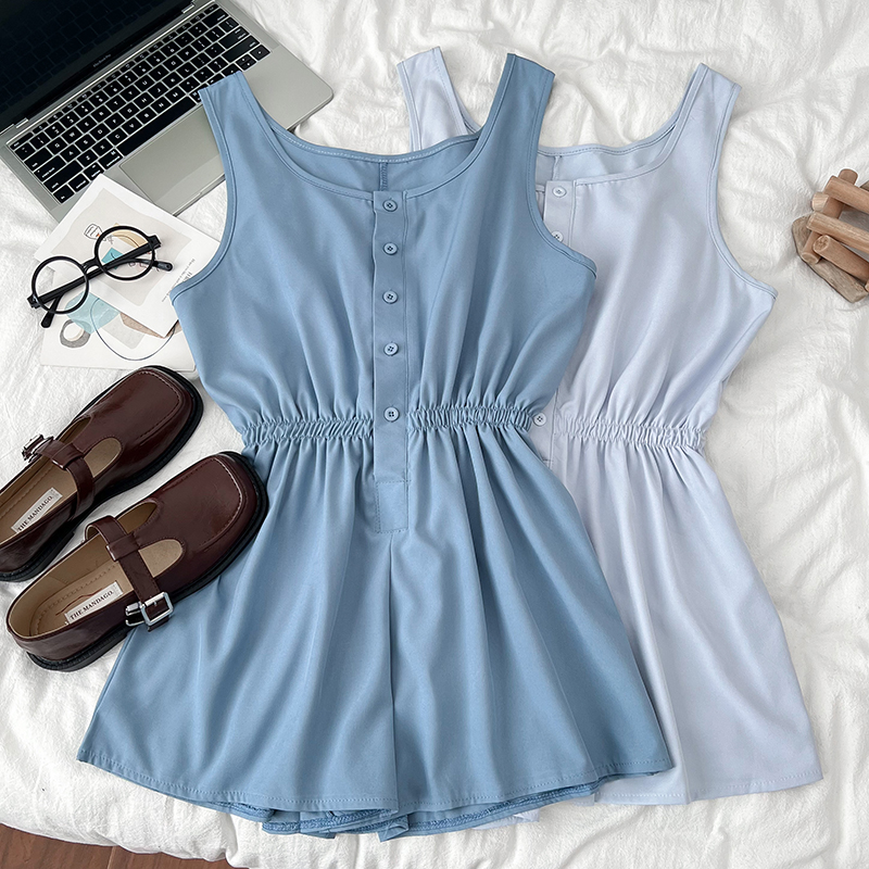韩版时尚百搭圆领单排扣高腰显瘦无袖背心连体裤阔腿裤休闲裤女