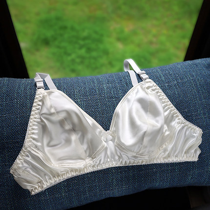 双层真丝文胸里外均100%桑蚕丝绸缎无钢圈超薄款大胸显小BC全罩杯