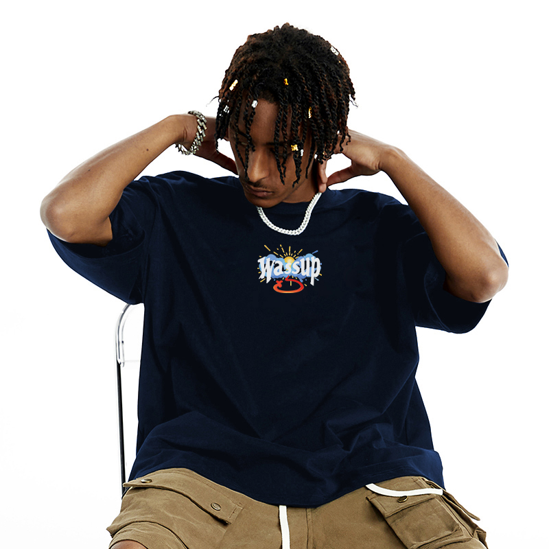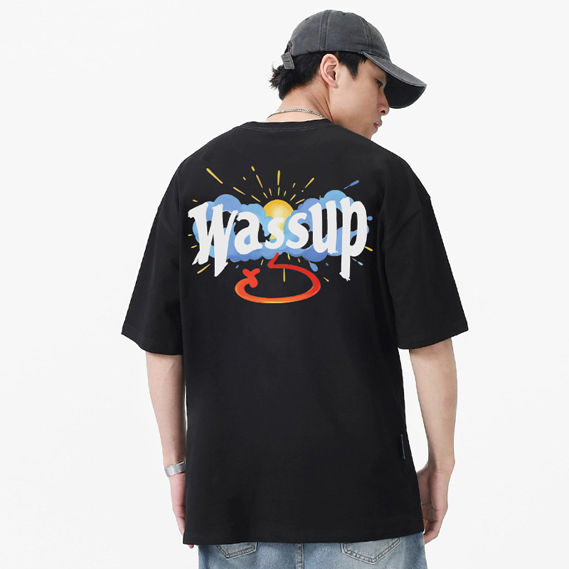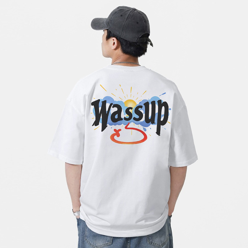 WASSUP日落云朵潮牌短袖男女夏季宽松百搭纯棉情侣圆领T恤衫上衣