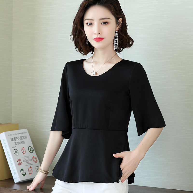 雪纺衬衫女短袖小衫中袖衬衣七分半袖时尚洋气上衣2023年妈妈新款
