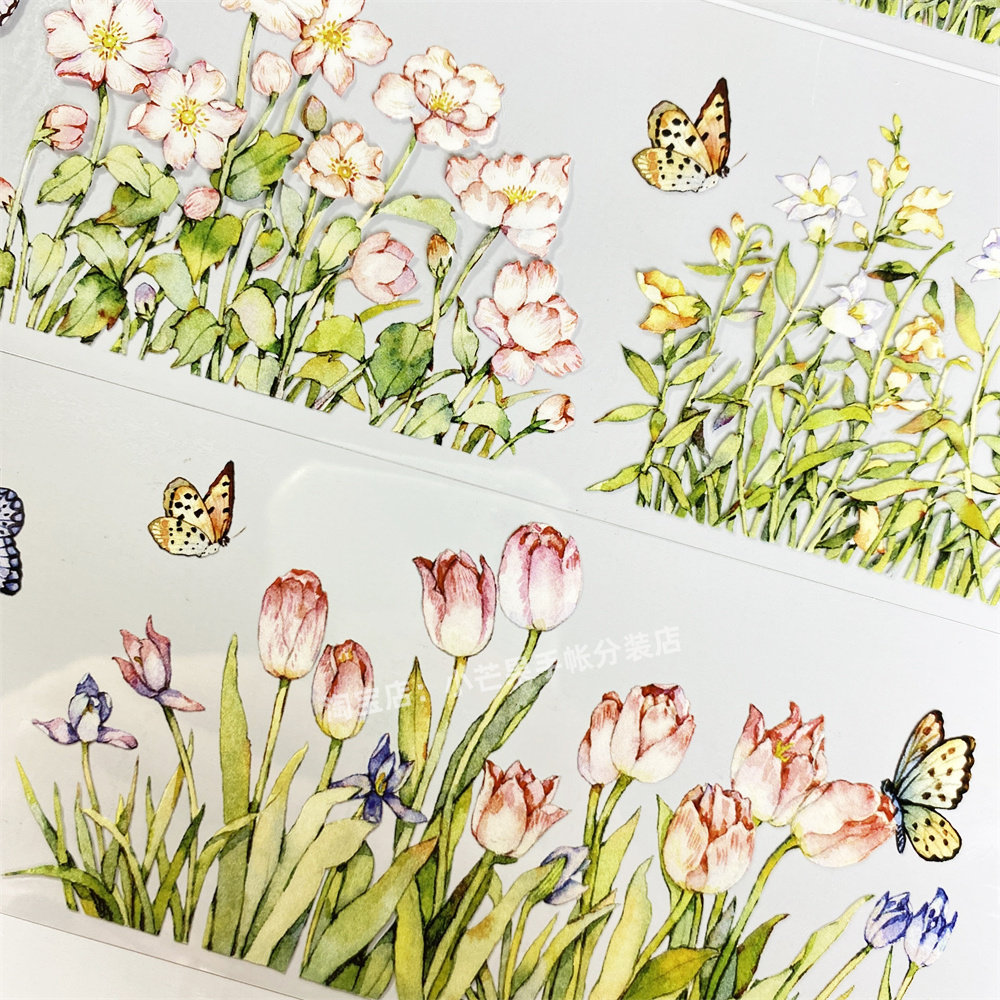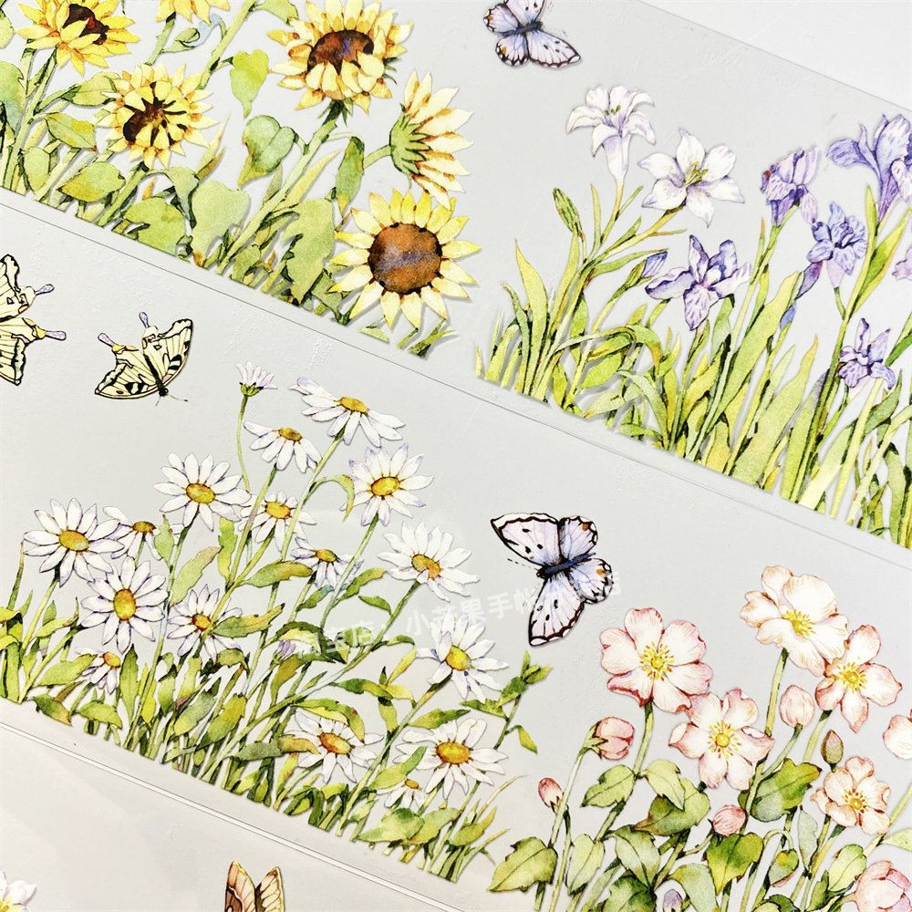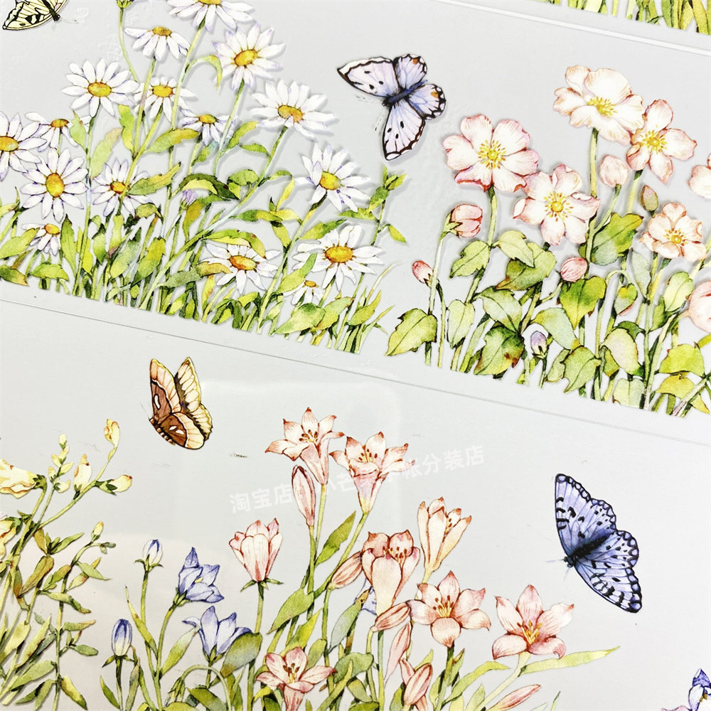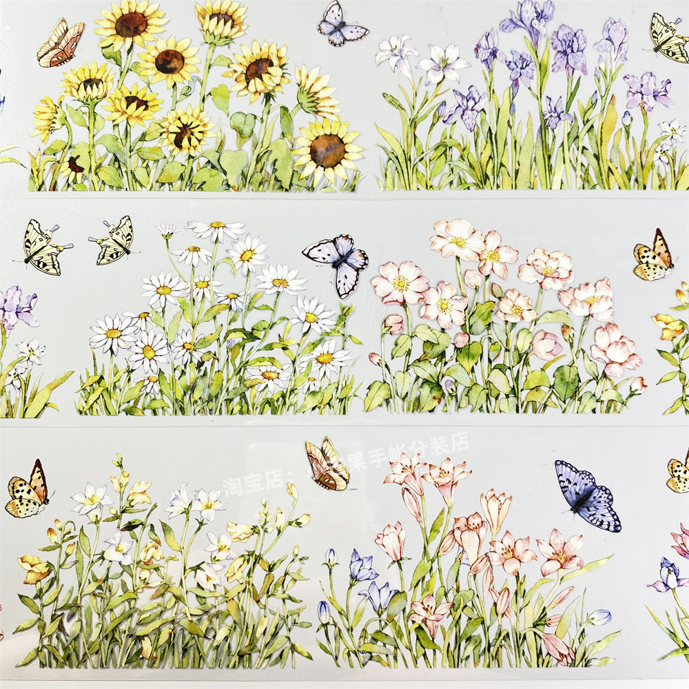 手帐分装胶带花丛五宝菊花草植物造景小古风PET素材账手机壳贴纸