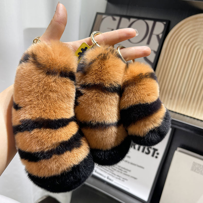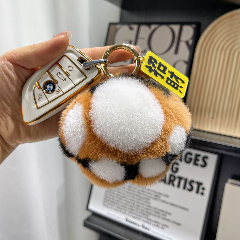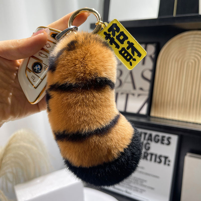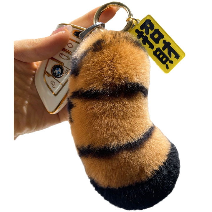 【老虎尾巴】可爱真獭兔毛汽车钥匙扣挂件毛绒情侣礼物书包包挂饰